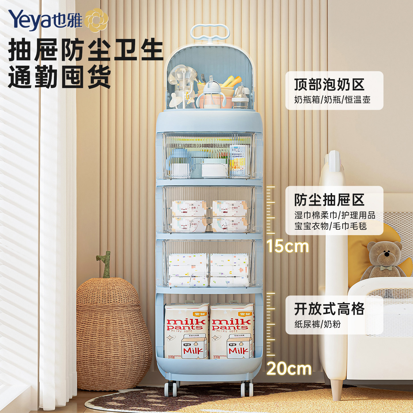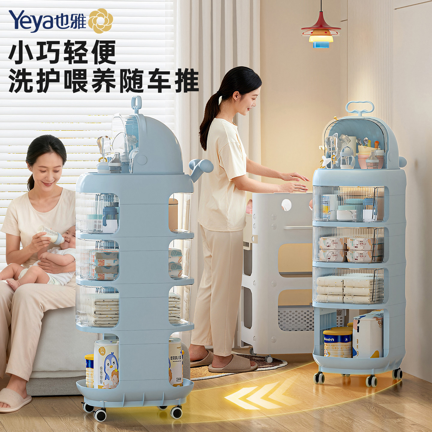 也雅婴儿用品置物架小推车喂养台收纳可移动新生儿专用护理手推车