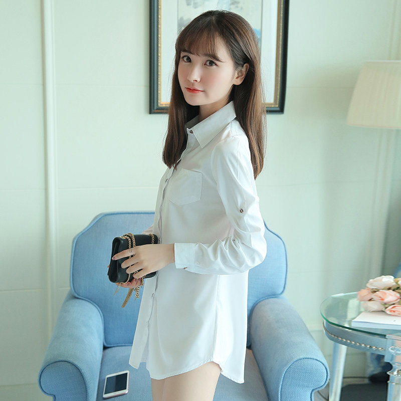 中长款韩范性感百搭风开衫白衬衣