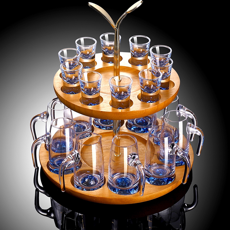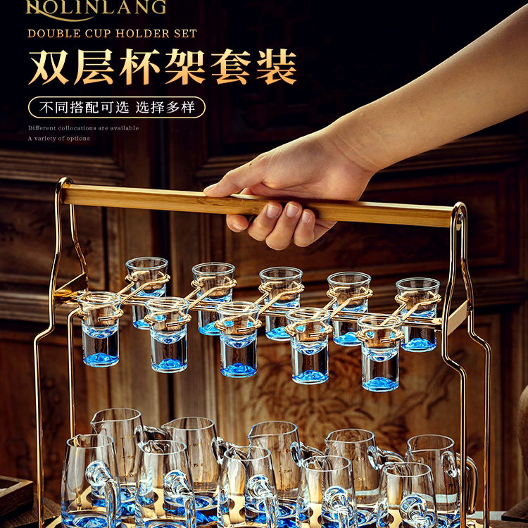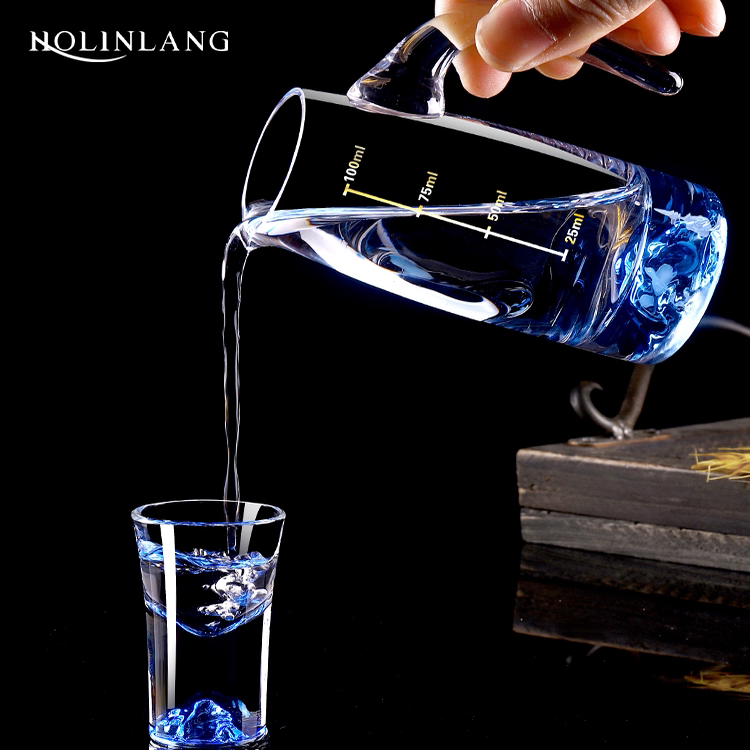 家用蓝色冰山白酒杯一口杯小酒杯子带把刻度分酒器酒盅酒具套装