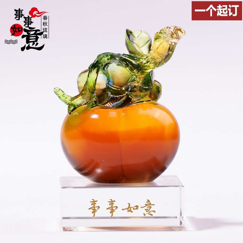 家居工艺品摆件事事如意奢创意轻客厅欧式玻璃柿子水晶装饰品琉璃