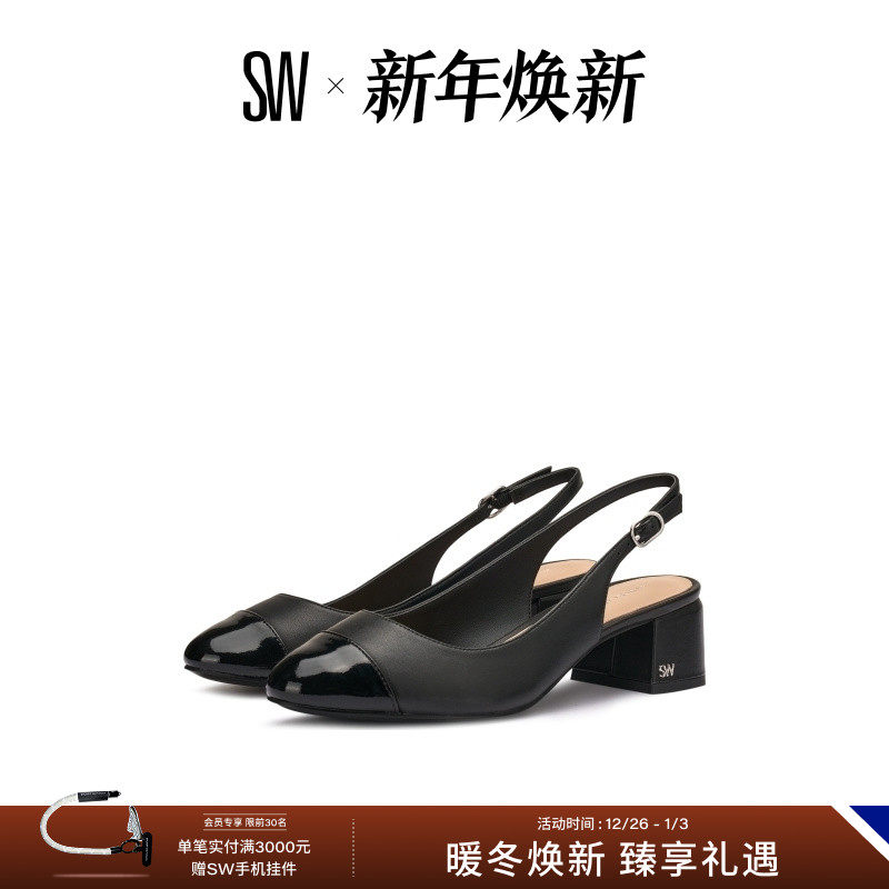 SW GABBY 45 SLINGBACK 25新款杏仁圆头方跟露跟高跟鞋女浅口单鞋