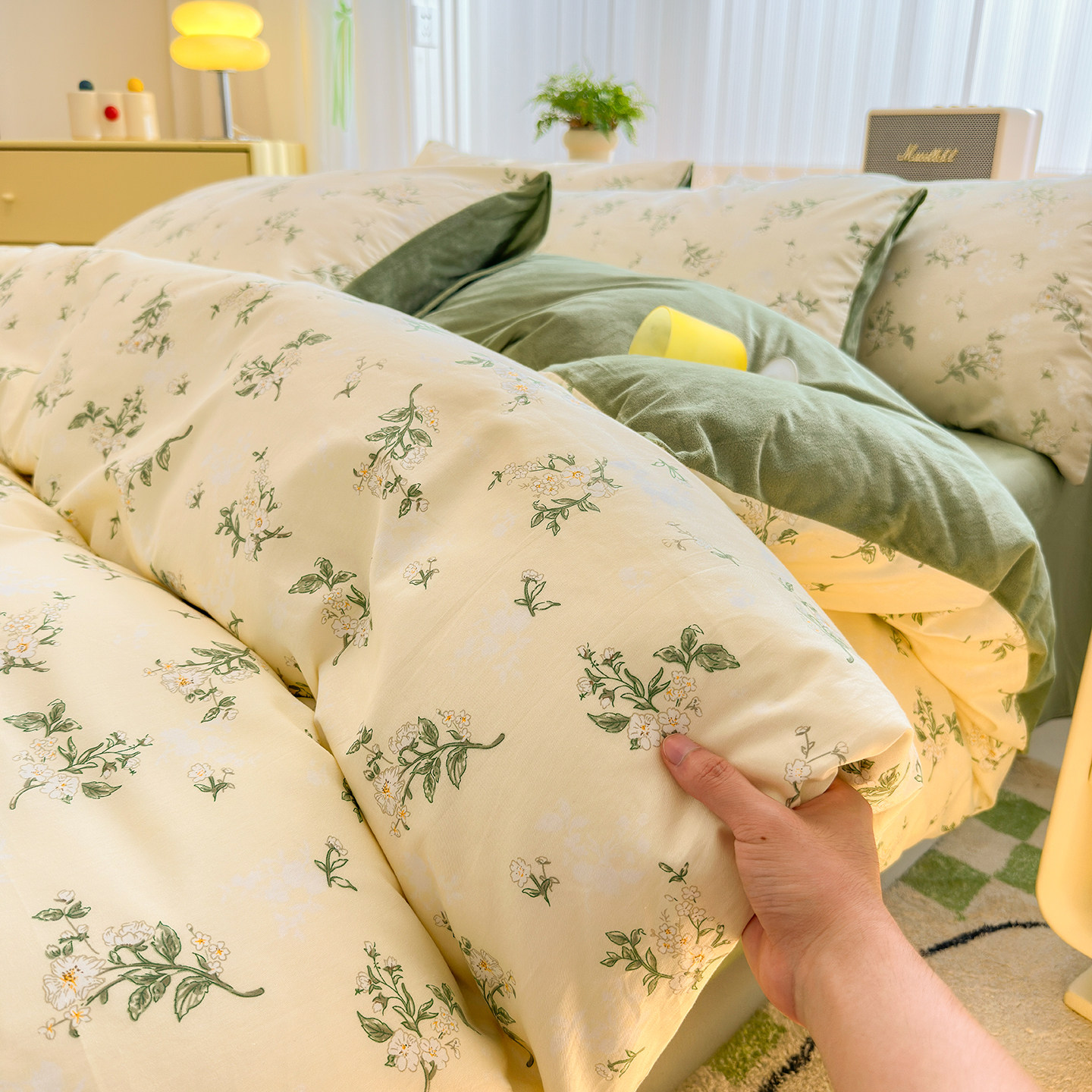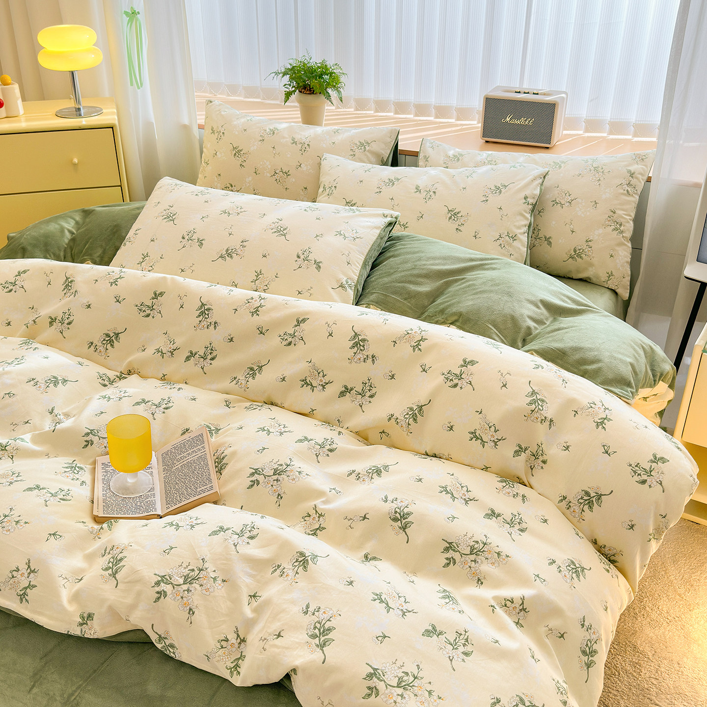 牛奶绒床上四件套碎花被套