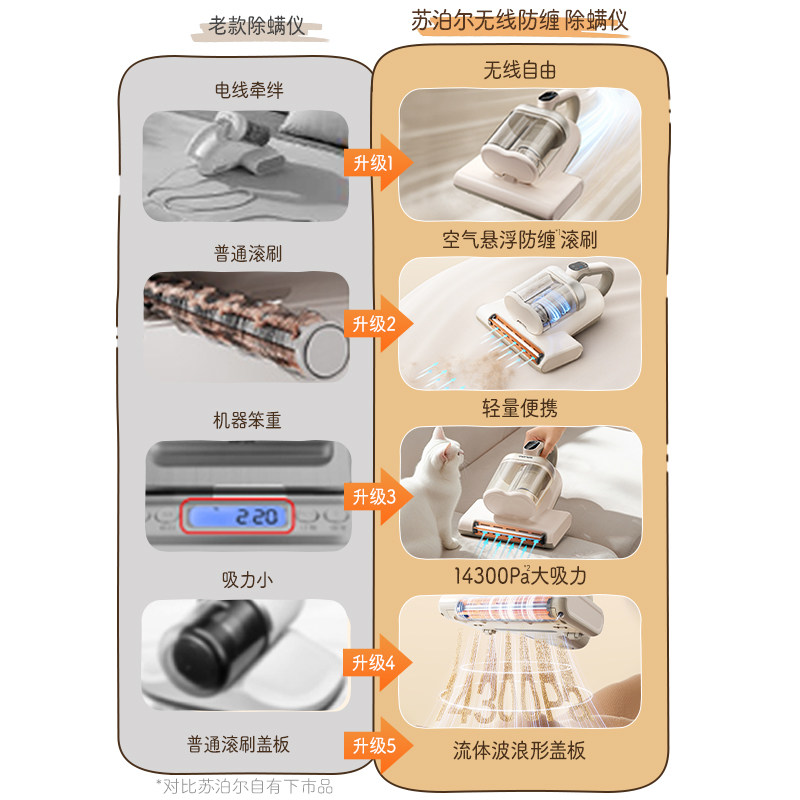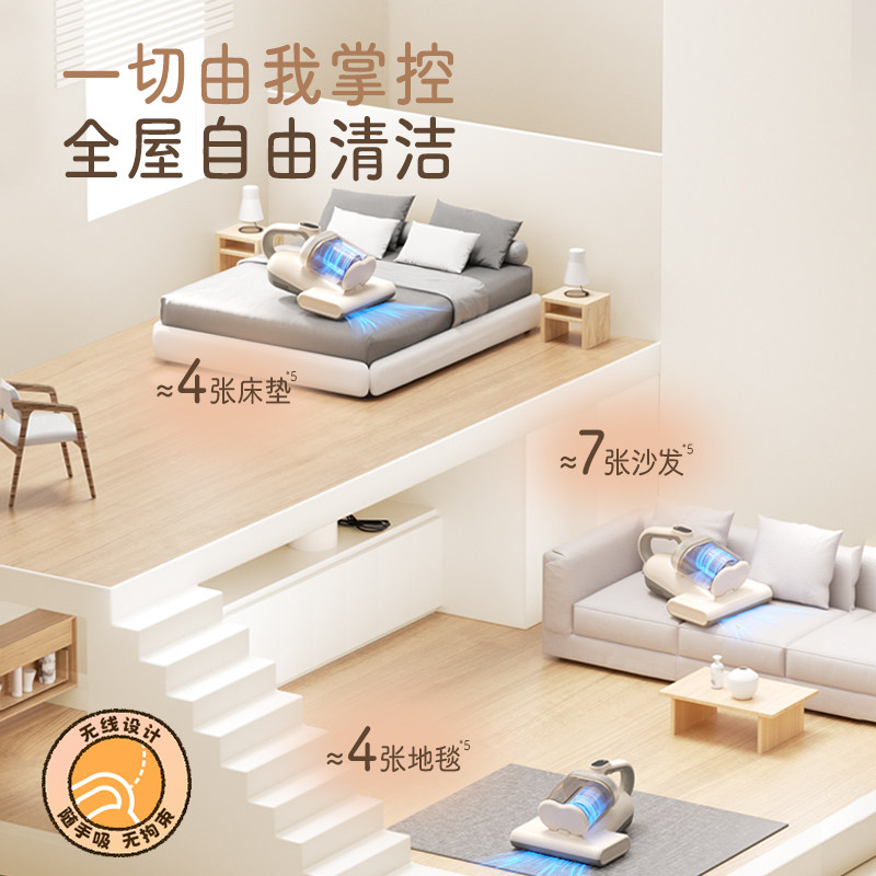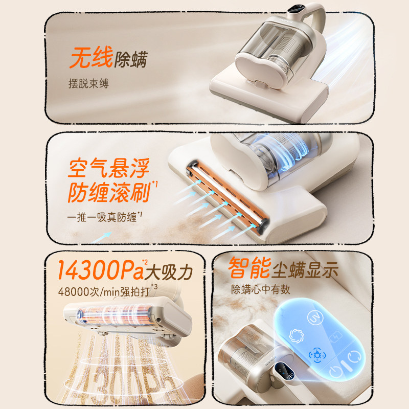 苏泊尔无线除螨仪家用床上吸尘器大吸力双杯尘螨紫外线杀菌除毛