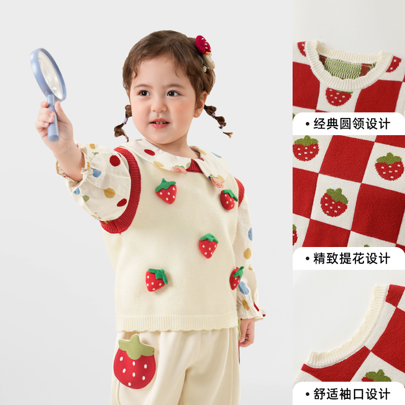 咔咔熊猫女童马甲春装婴儿韩版针织背心马夹毛衣春秋小童儿童洋气