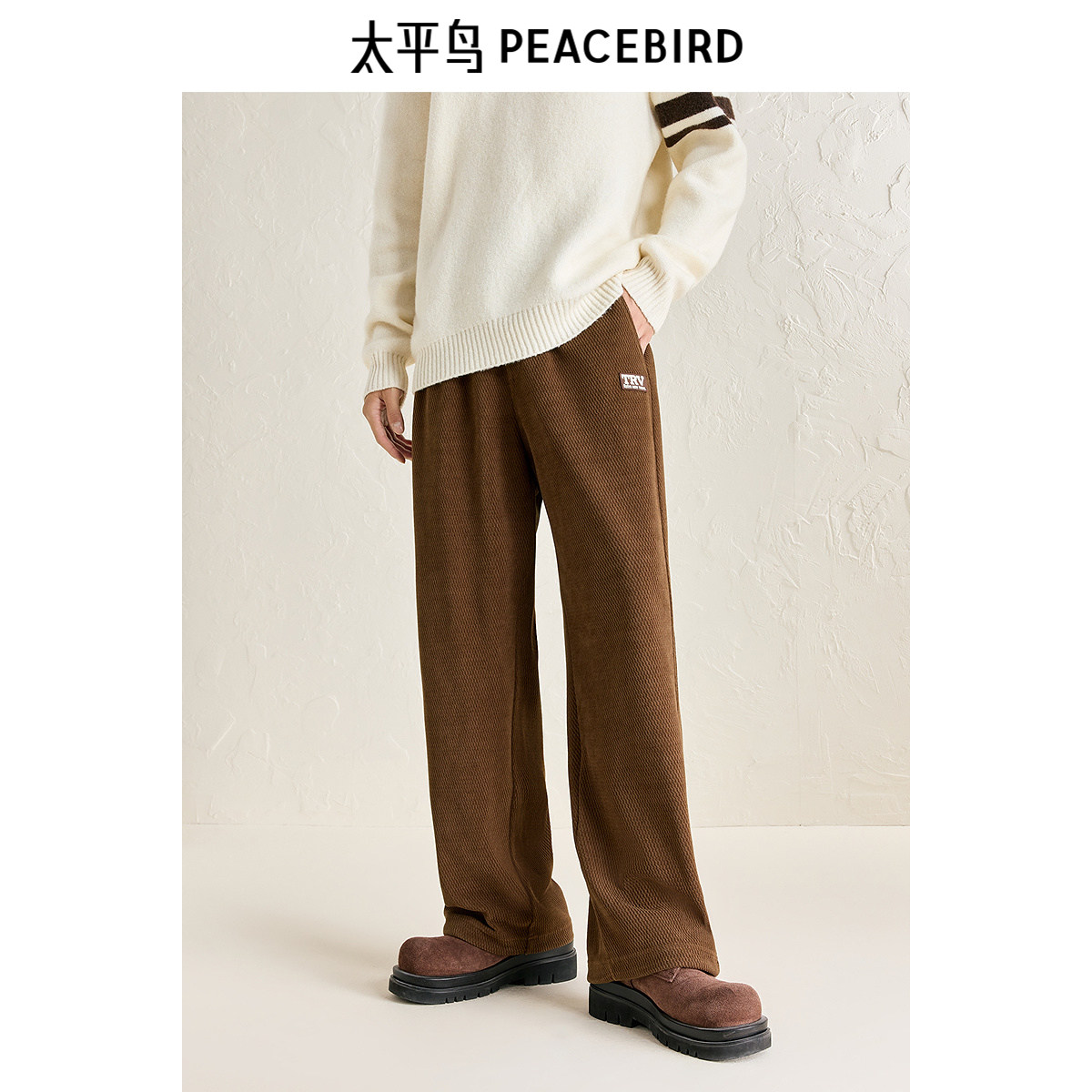 太平鸟男装休闲裤24冬针织运动卫裤绒感雪尼尔保暖长裤BBGME422P