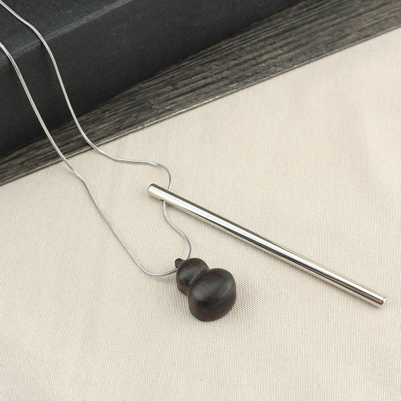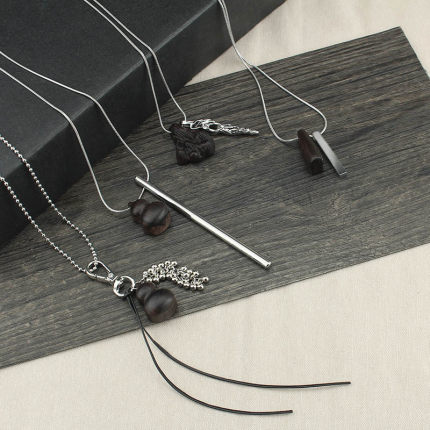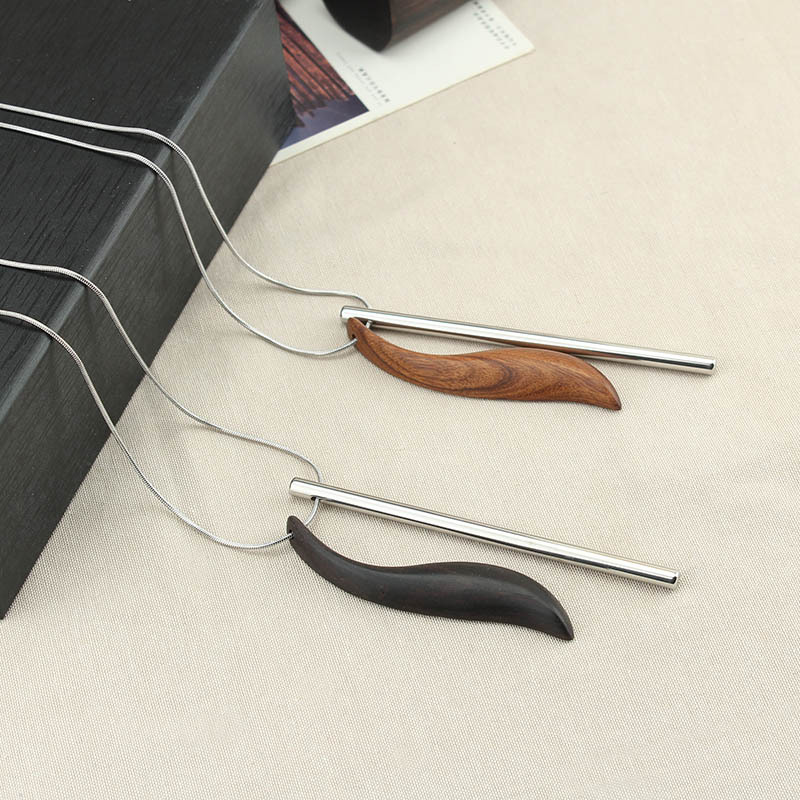 欧美几何光面方条檀木项链女个性嘻哈长款吊坠百搭毛衣链复古配饰