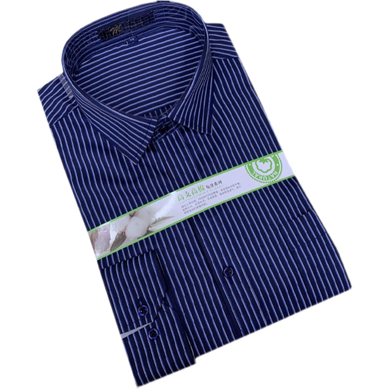 铭盛缘 2021秋季新品 男士 商务休闲免熨烫 长袖衬衫 蓝色竖条纹