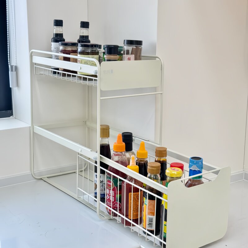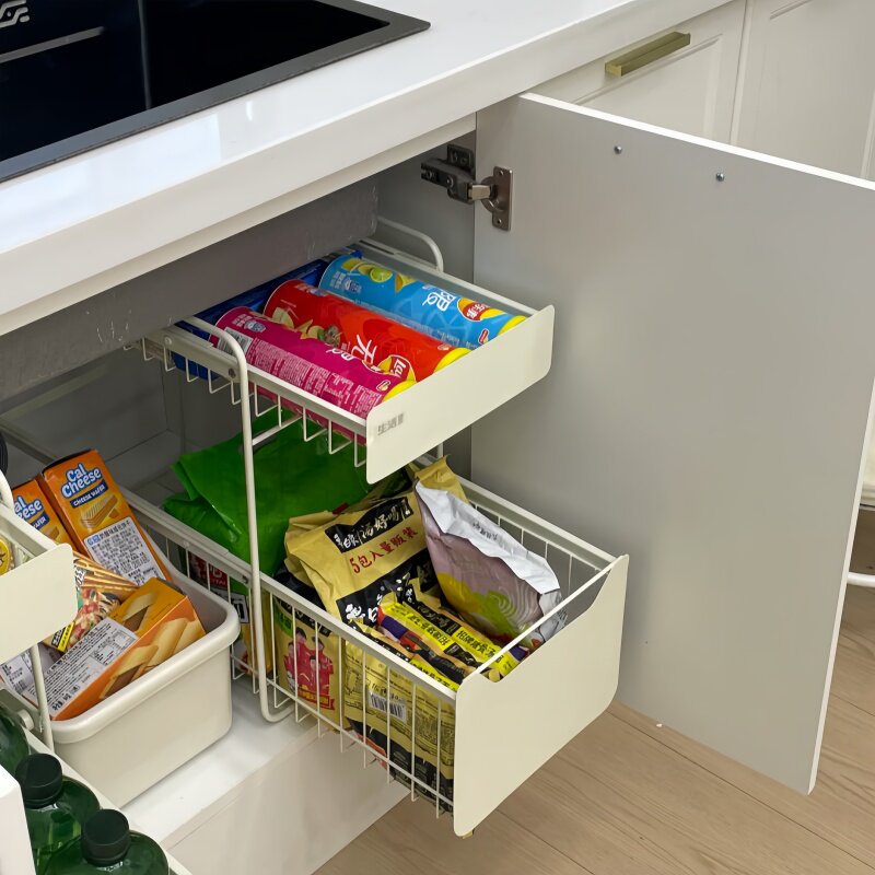 抽屉式橱柜内收纳筐厨房浴室清洁用品储物推拉篮厨房下水槽置物架