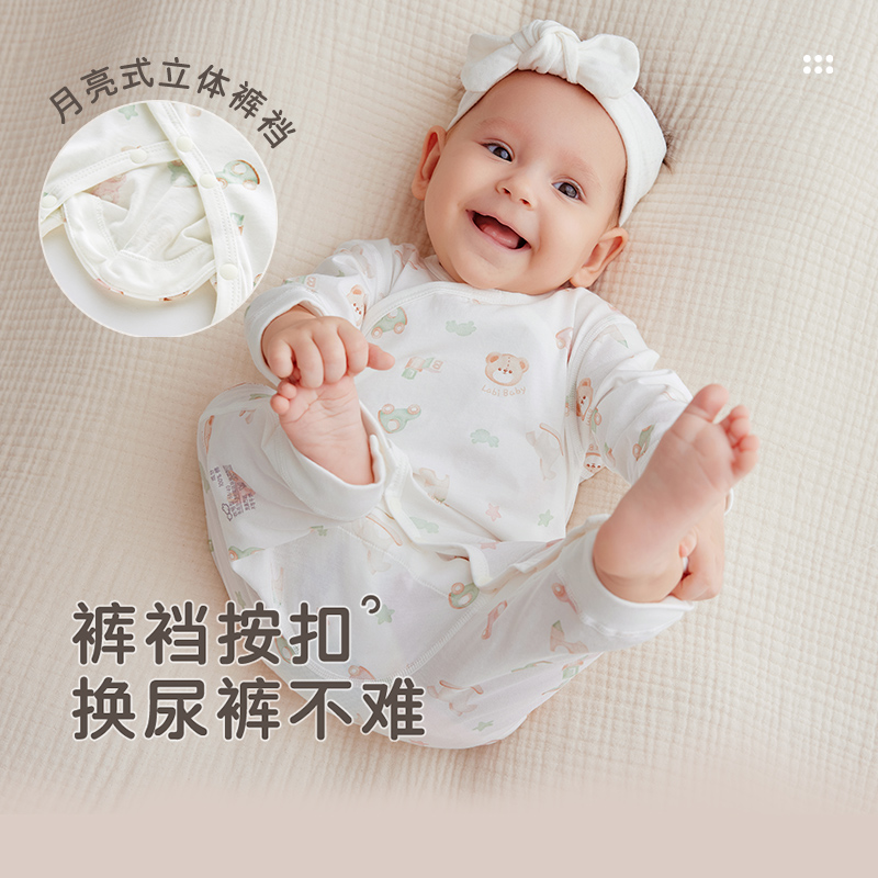 拉比婴儿绑带连体衣新生儿长袖纯棉宝宝25年春夏新款哈衣爬服2件