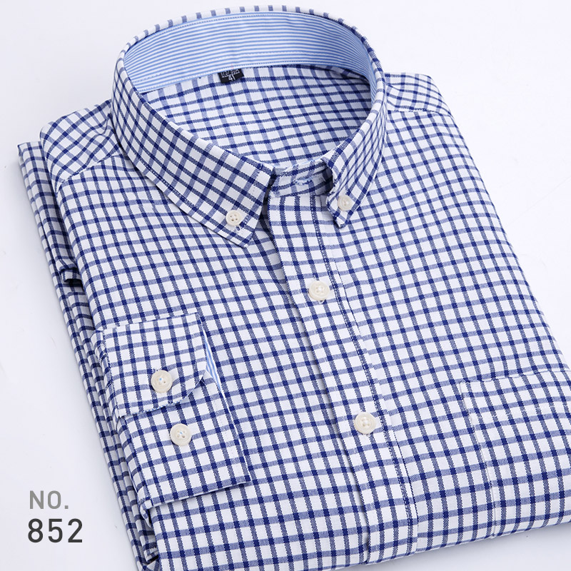 格子衬衫牛津纺长袖纯色中年免烫