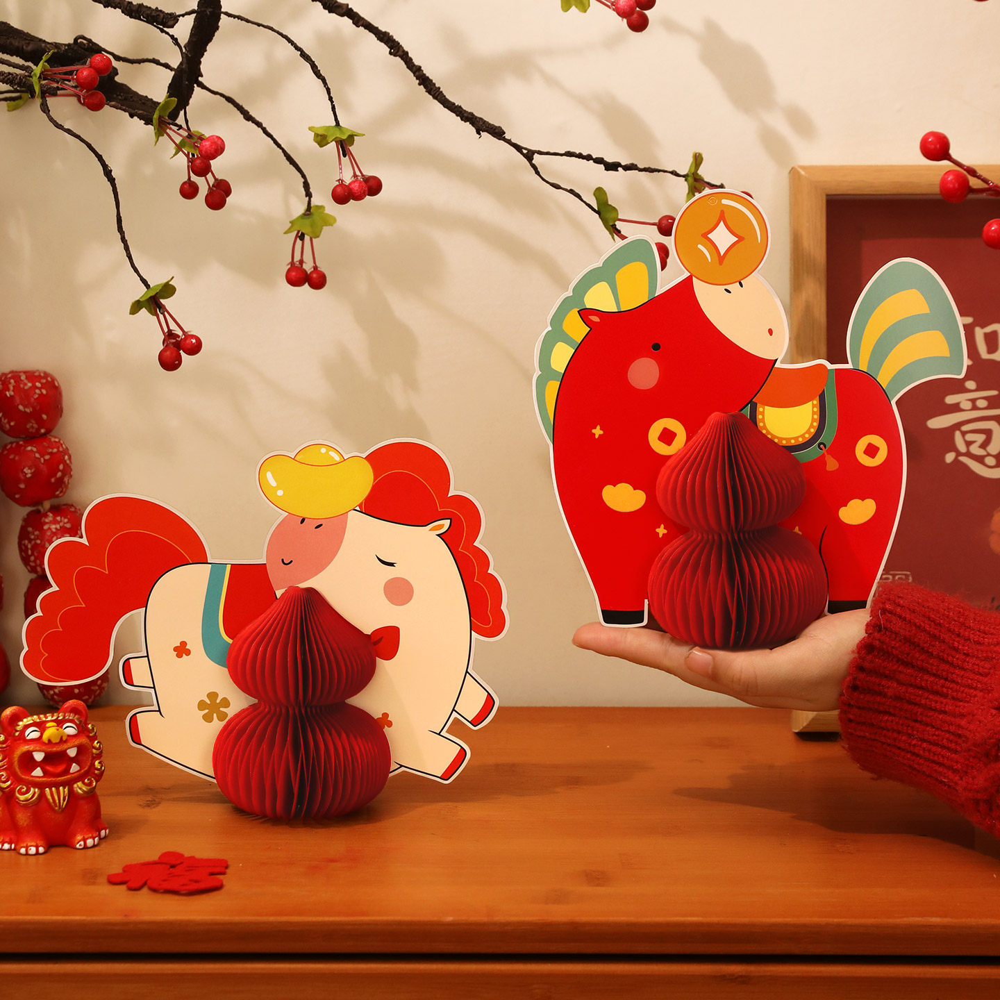 2026新年灯笼挂饰马年蜂窝球挂件