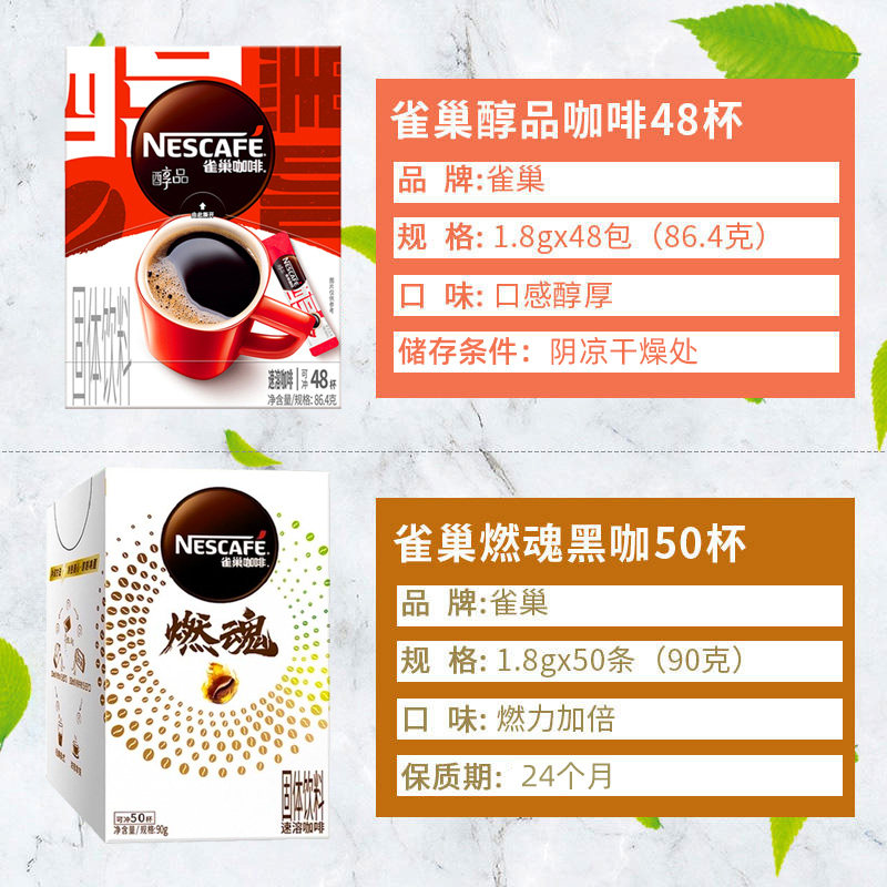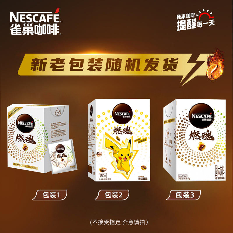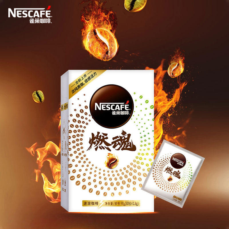 雀巢黑咖啡燃魂低脂特浓速溶咖啡粉上族健身足学生50袋装咖啡
