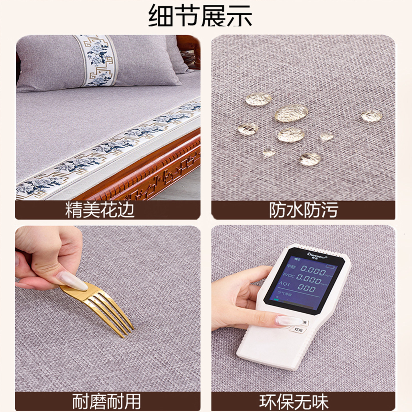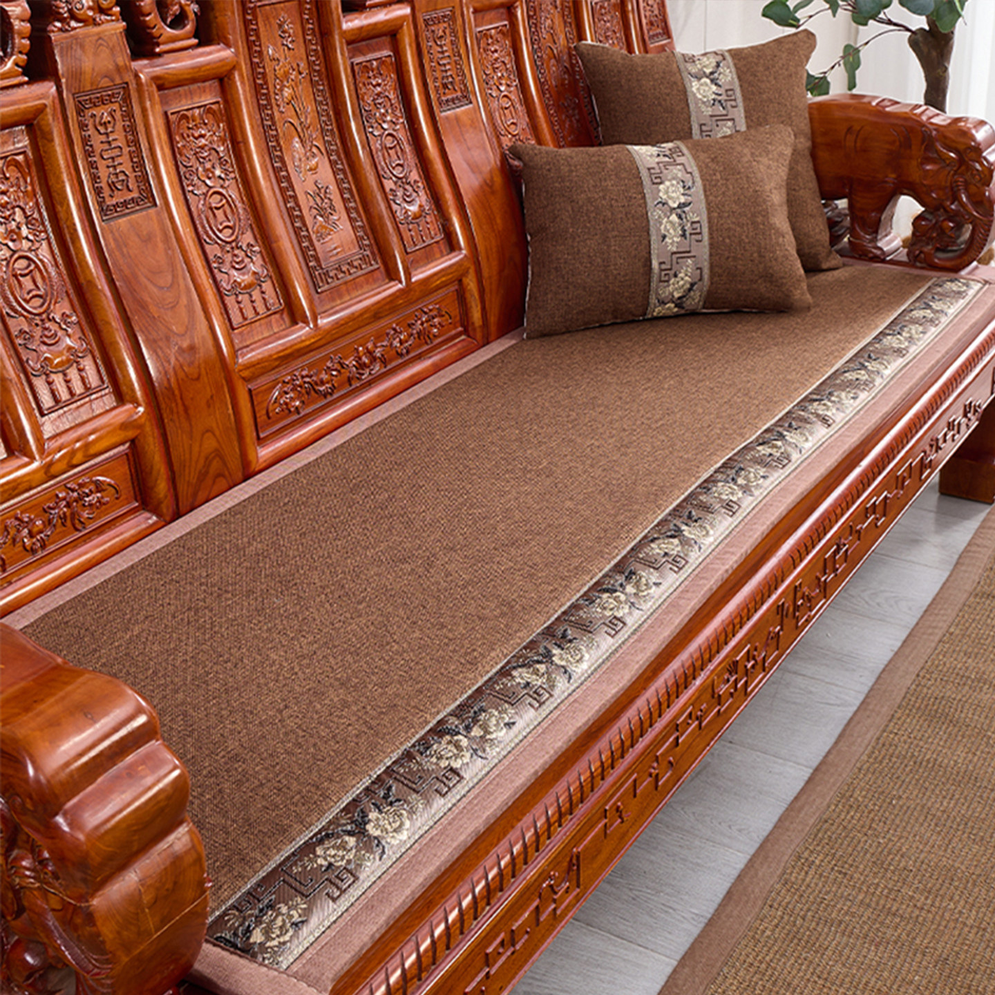 四季通用中式棉麻亚麻红木沙发垫