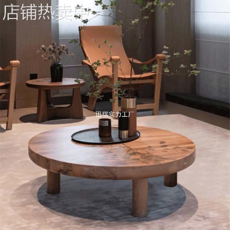 茶桌原木茶台客厅复古家用设计师圆形实木茶几现代简约木质北欧