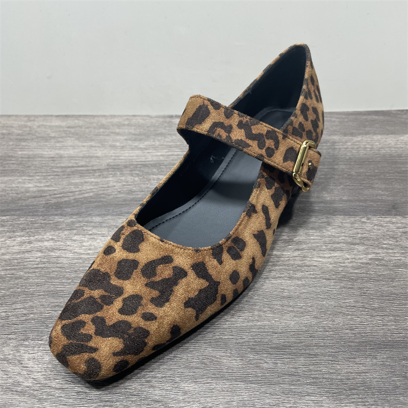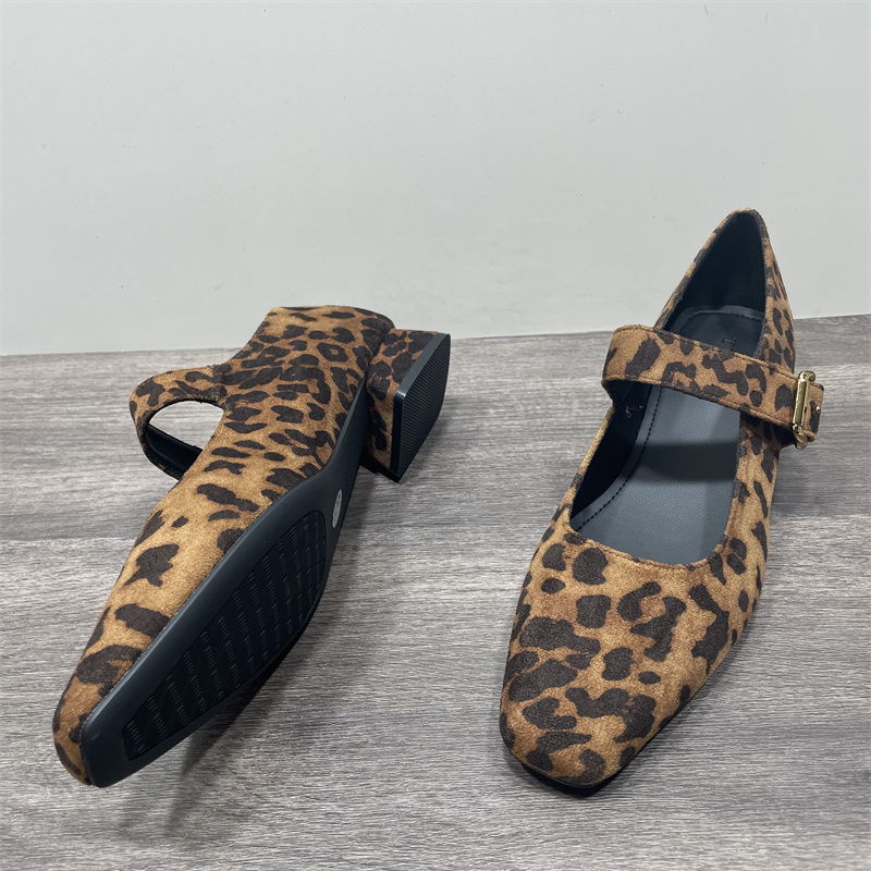 断码处理法式春秋新款方头单鞋女复古玛丽珍豹纹粗跟通勤奶奶鞋女