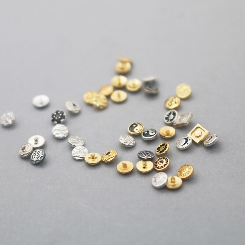 文玩镶嵌银标太极红绿灯镀金猴头招财进宝星月手串配饰钉diy配