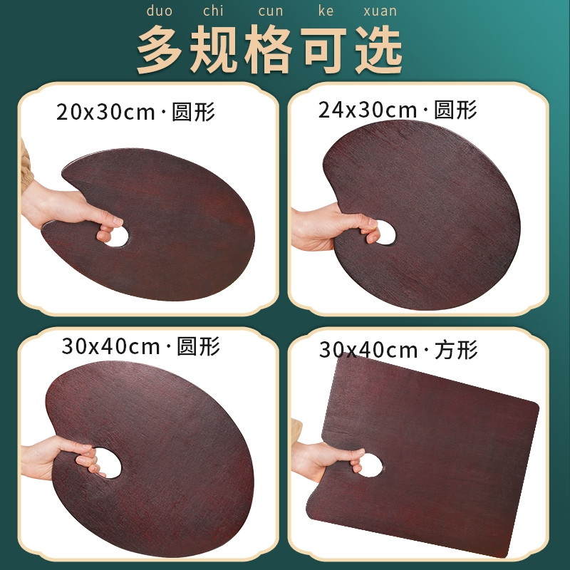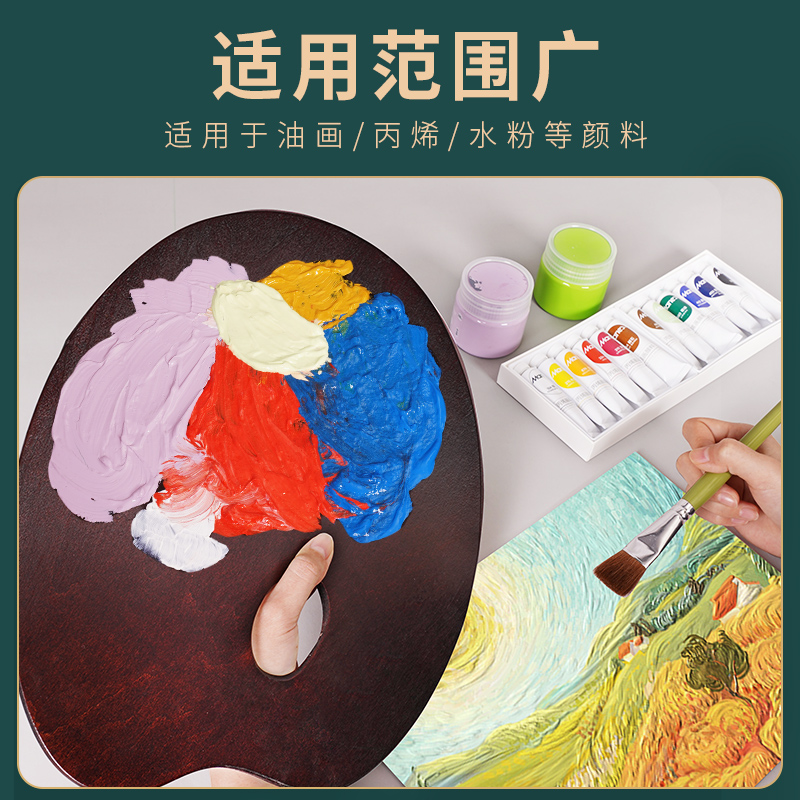 油画调色板美术生专用超轻椭圆形木质小号轻便丙烯颜料油画封油盘实木水粉调色油画棒大号加厚方形复古调色盘
