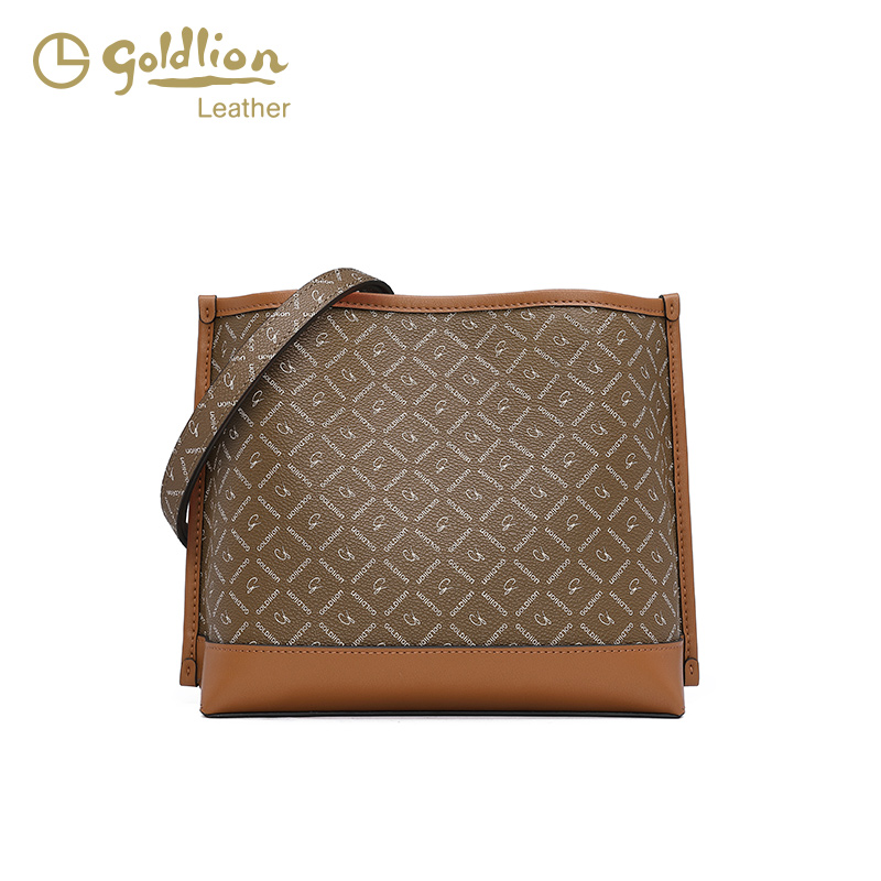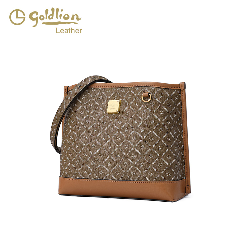 金利来2025新款时尚女包pvc复古印花单肩斜挎包大容量百搭水桶包
