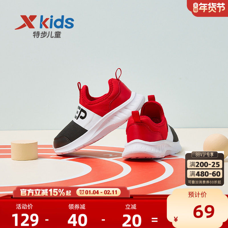 特步儿童男童鞋春秋季款透气一脚蹬童鞋小童宝宝防滑网面运动鞋