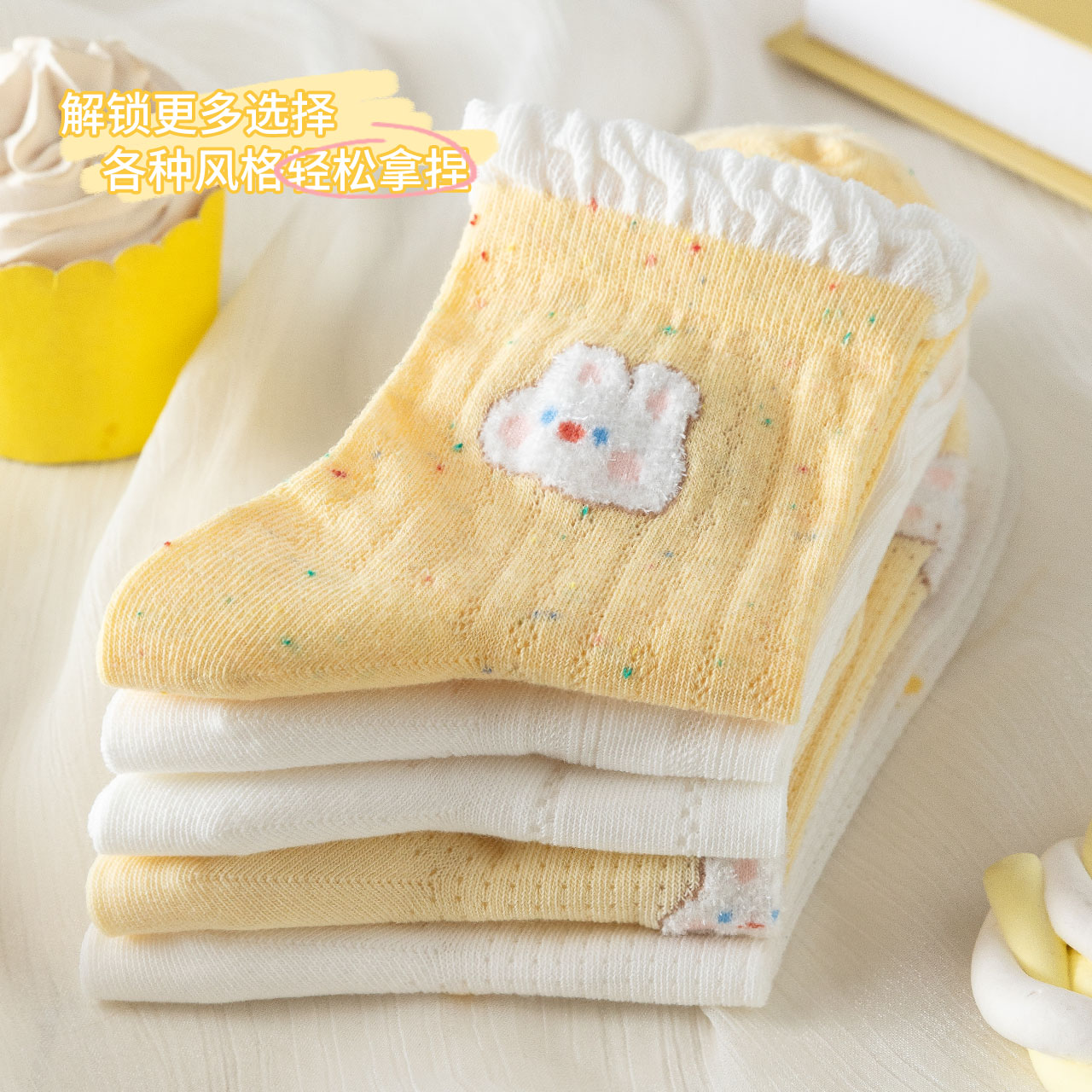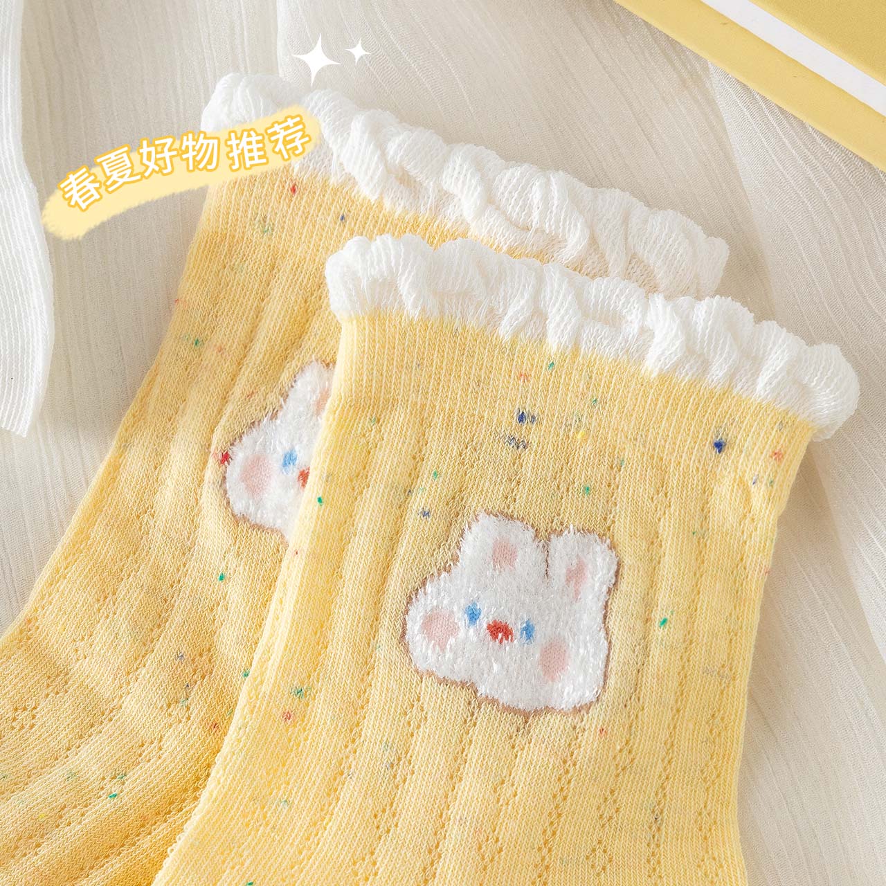 袜子女可爱女生短袜新款春夏女款网眼棉袜少女黄色中筒袜薄款女袜