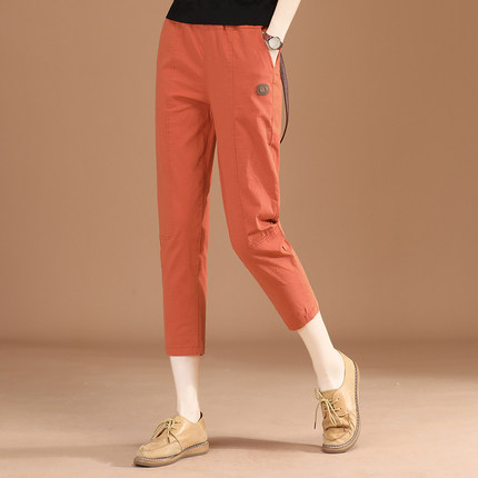 松紧腰七分休闲裤子女夏季宽松2025季新款显瘦百搭哈伦裤