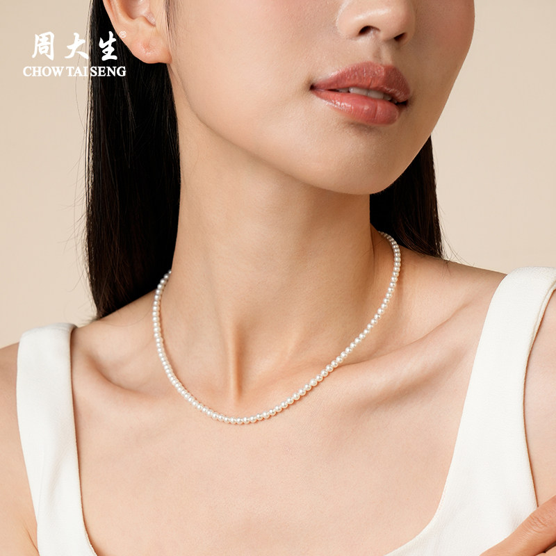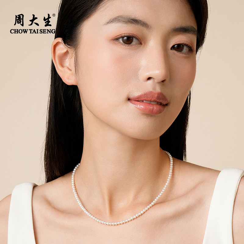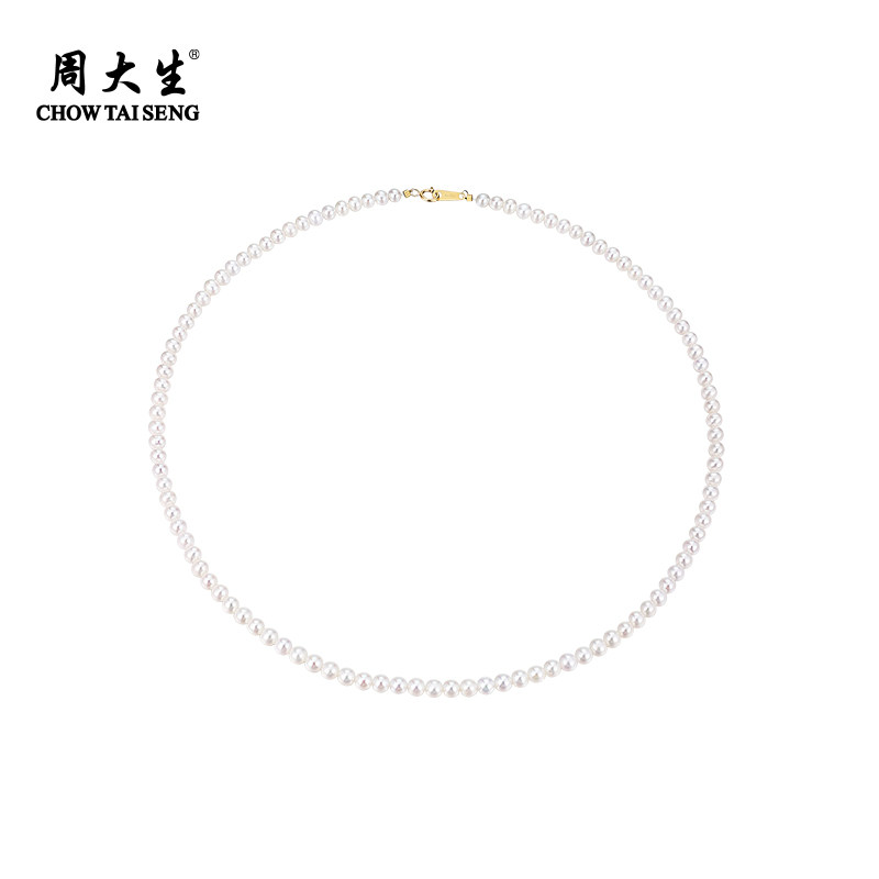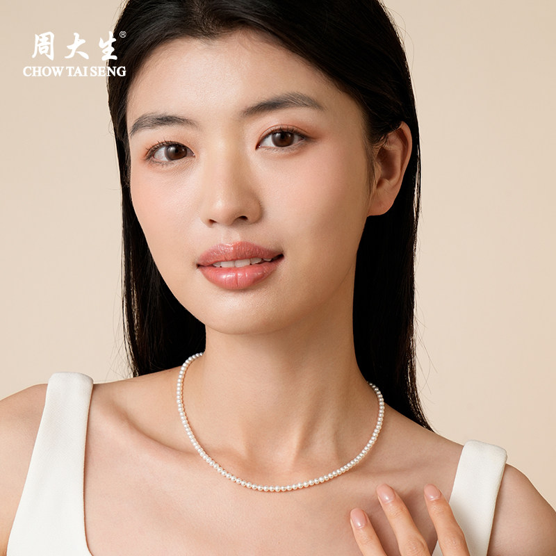 周大生轻灵珍珠项链18k金近正圆强光小米珠项链时尚轻奢颈链3-4mm