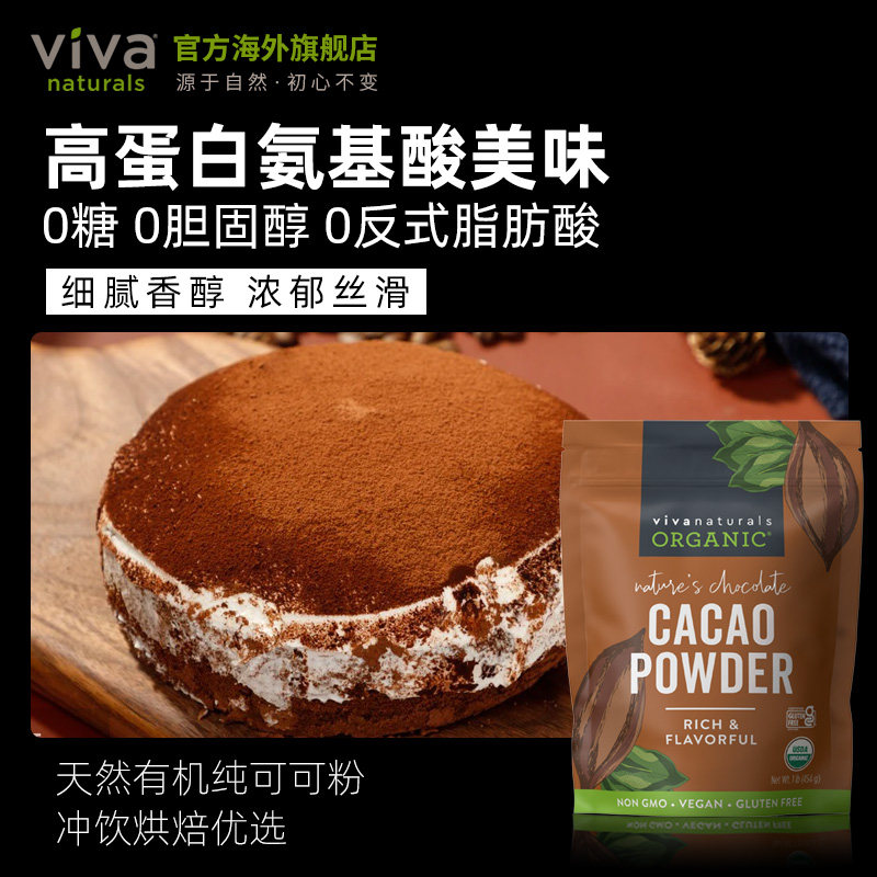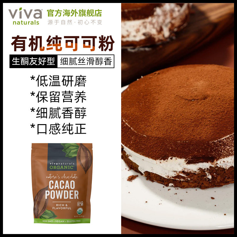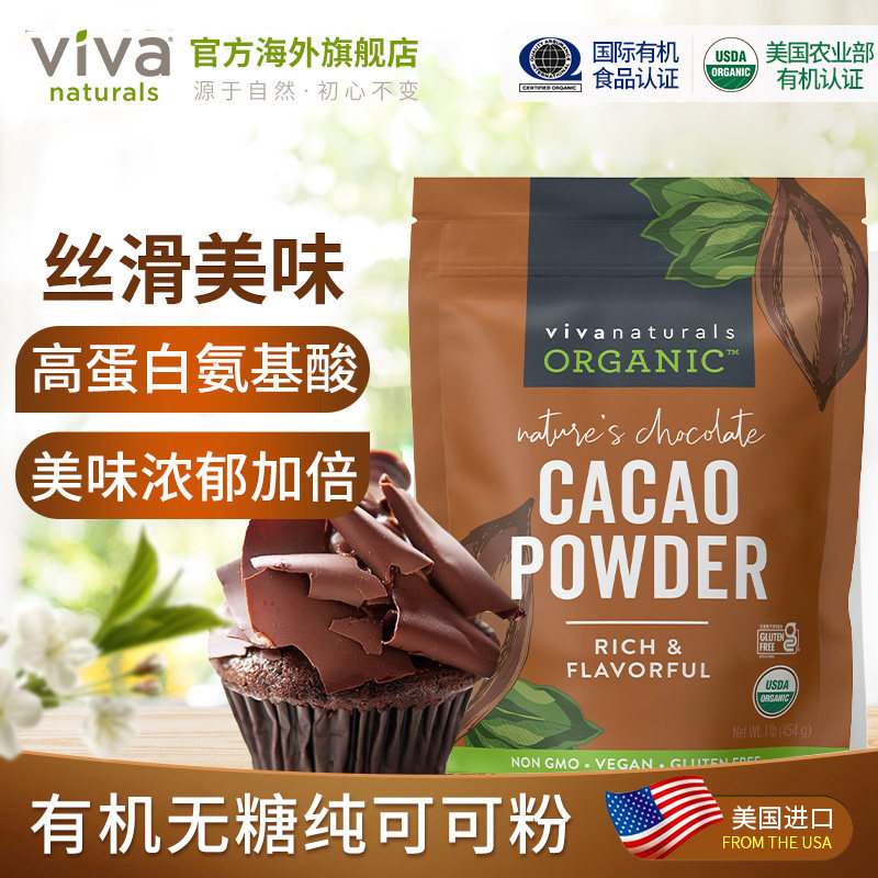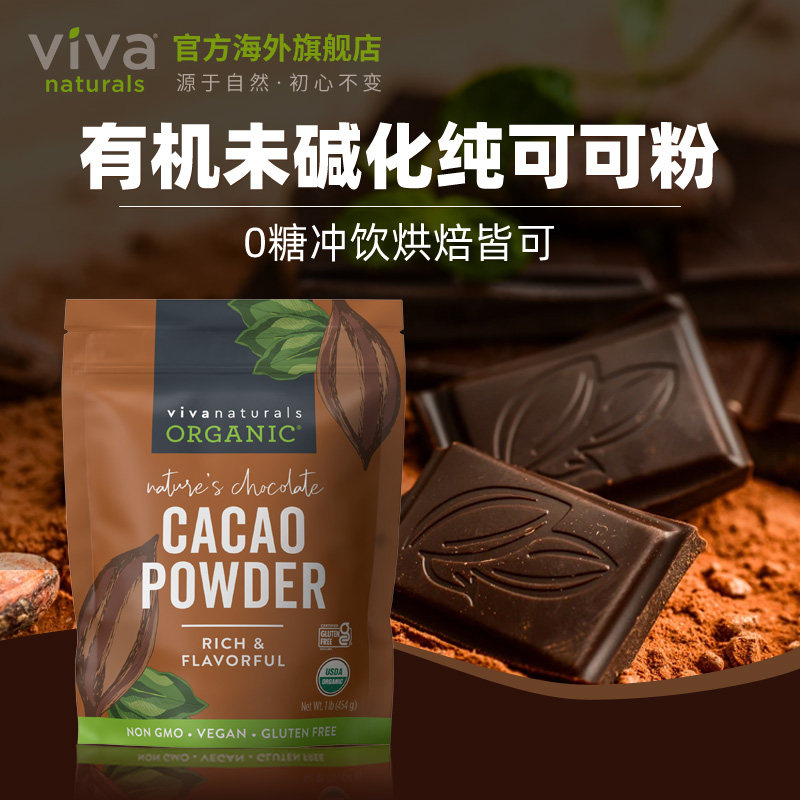 Viva进口天然有机无糖纯可可粉454g生可可cacao烘焙巧克力冲饮品