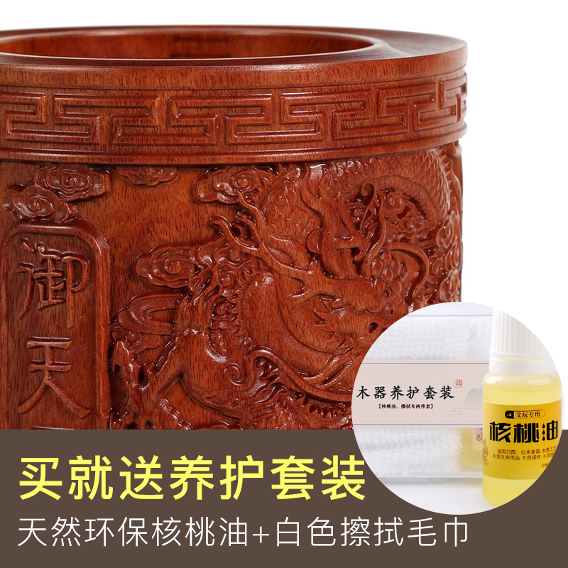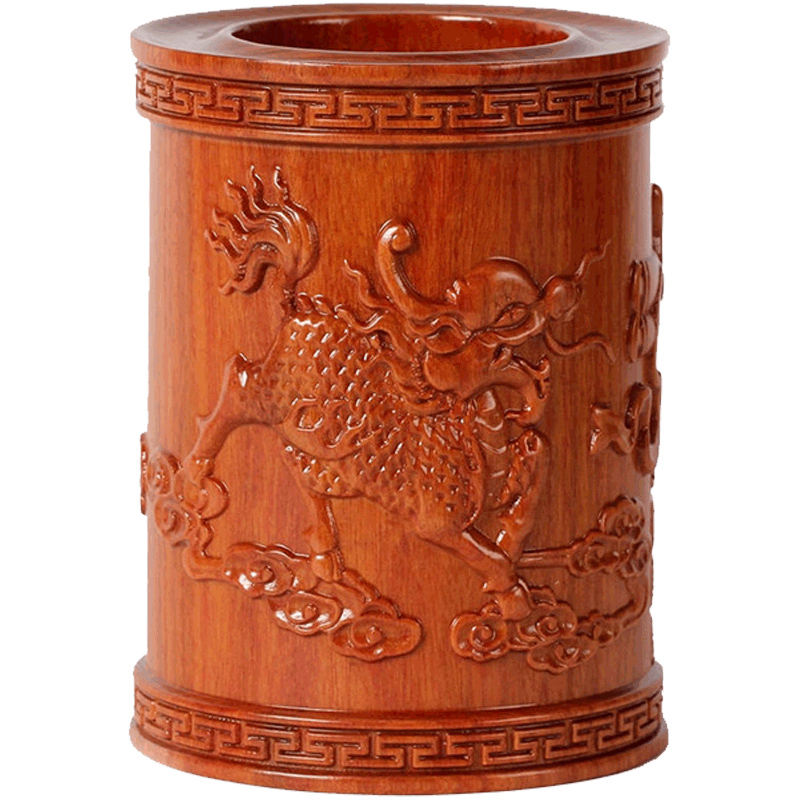 红木手工艺品 中式精品摆件 实A木雕刻红酸枝木黑檀木质红木笔筒