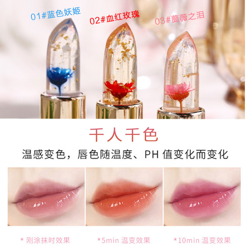 【官方正品】花瓣果冻变色口红不沾杯不掉色持久保湿温变润唇膏女