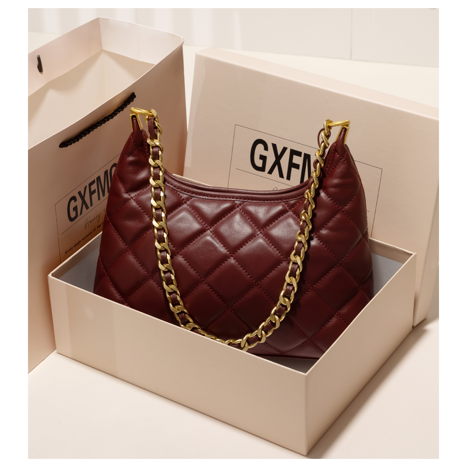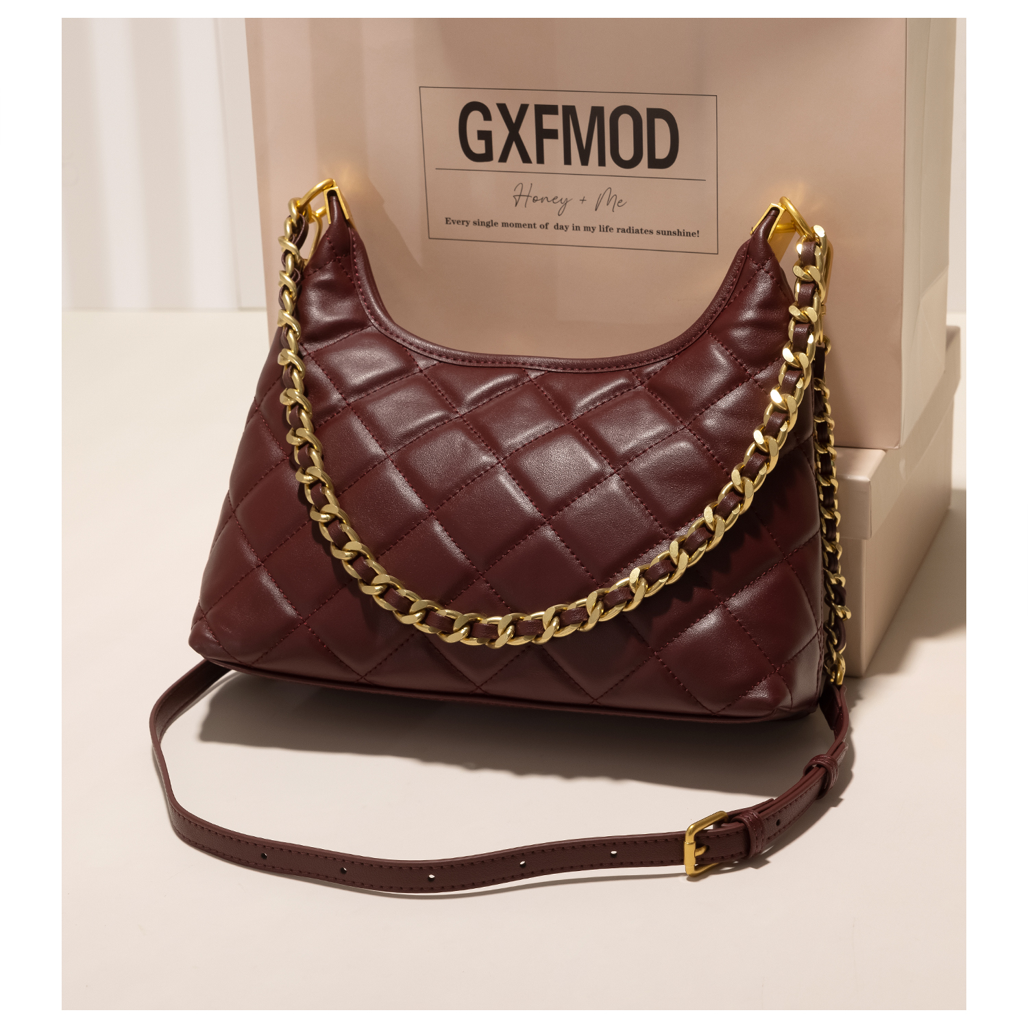 GXFMOD新品真皮菱格链条腋下包2025春夏新款红色新娘婚包斜挎包