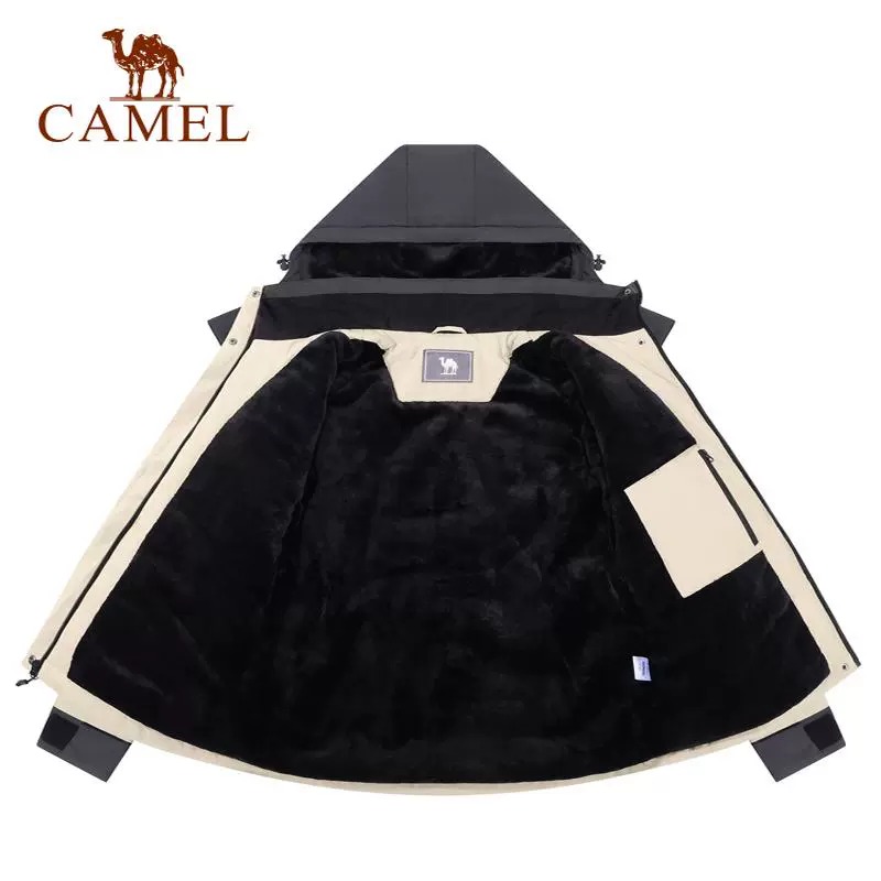 【清仓】骆驼男女单层冲锋衣冬季夹棉外套防风厚登山服休闲风衣