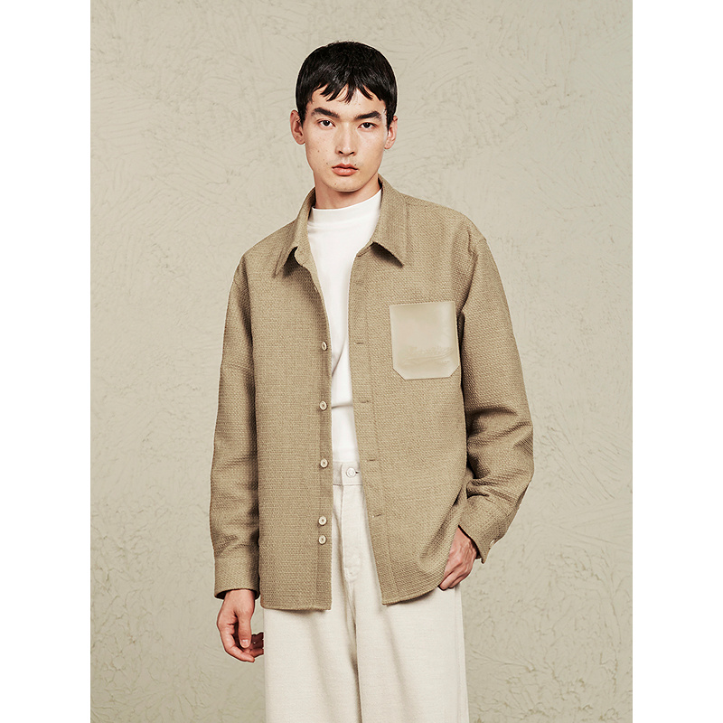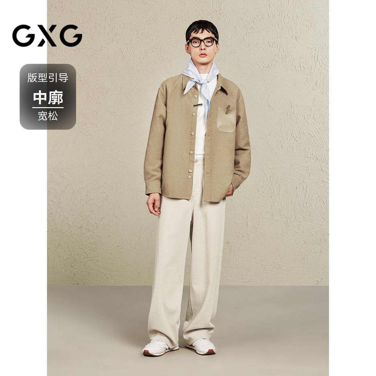GXG男装 多色肌理面料pu口袋宽松长袖衬衫外套男 24年秋季品
