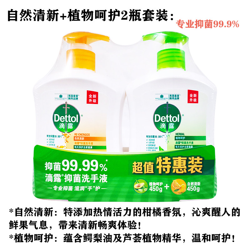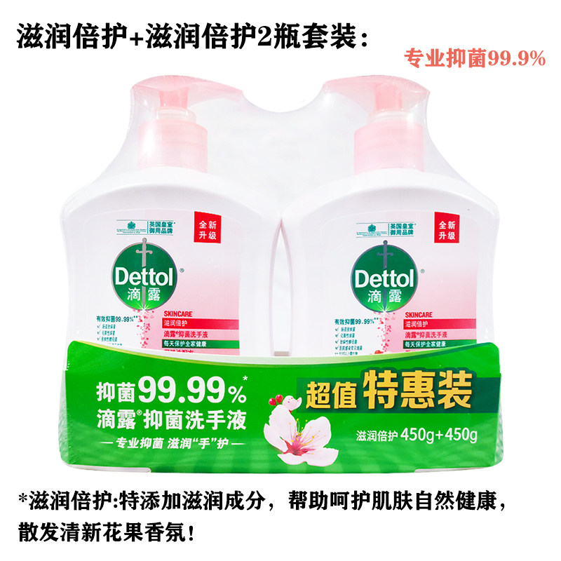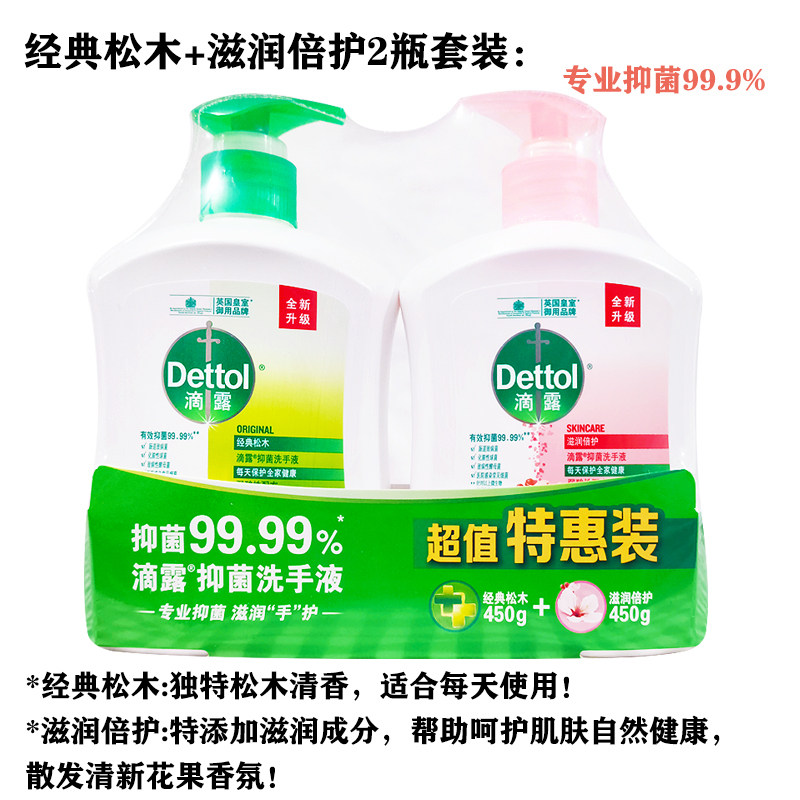 正品滴露洗手液松木滋润倍护健康抑菌洗手液450g+450g2瓶套装家用