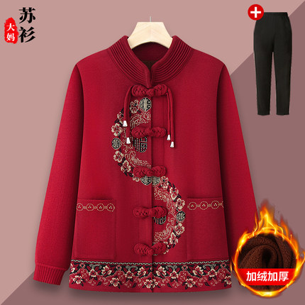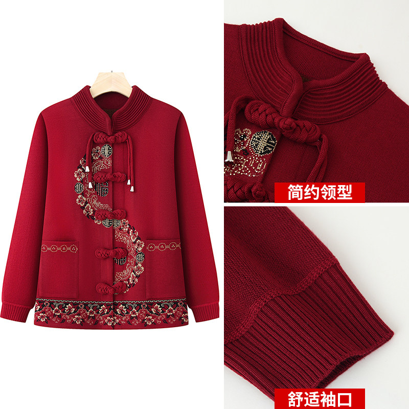 中老年人秋装外套女唐装奶奶秋冬款针织毛衣妈妈生日寿宴太太衣服