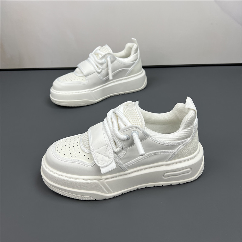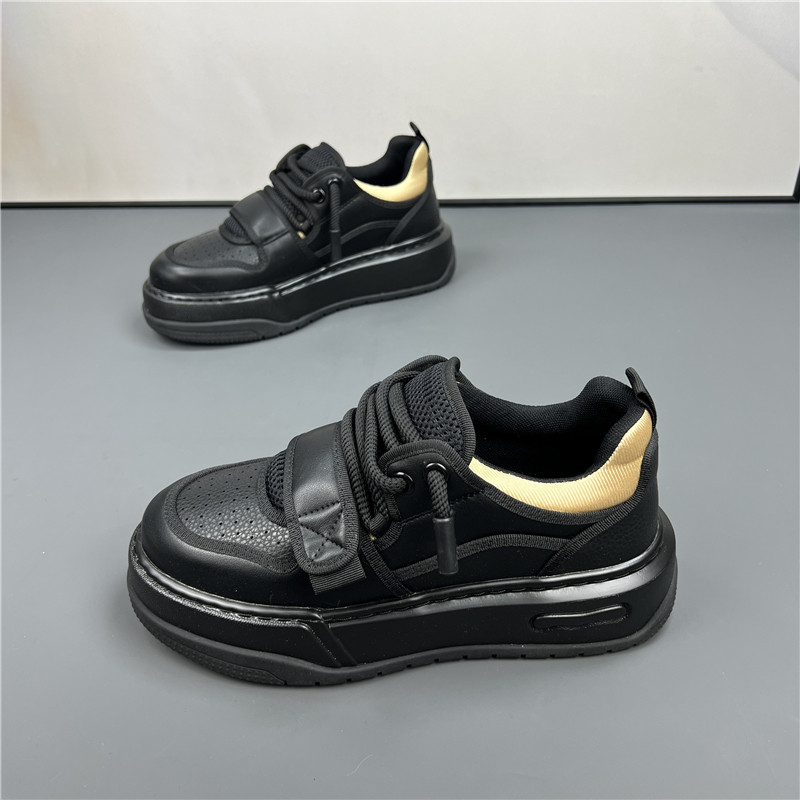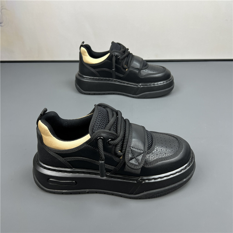 2025夏季新款运动休闲鞋魔术贴打孔透气一脚蹬厚底增高板鞋潮男鞋