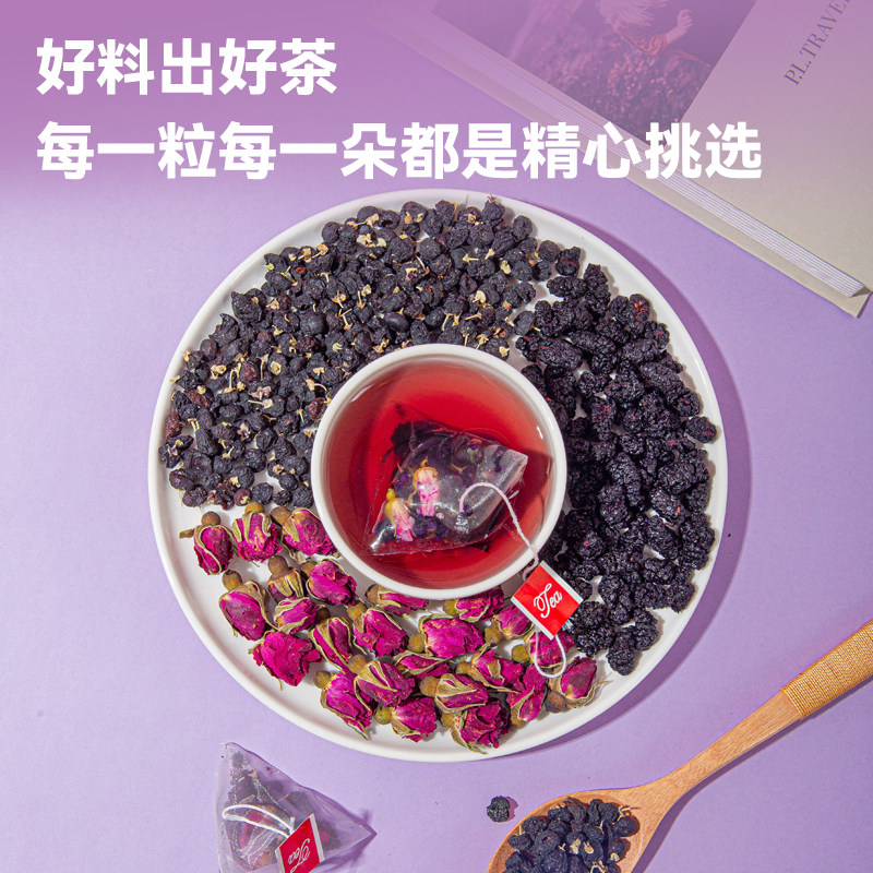 桑葚干黑枸杞玫瑰花茶冬天女生熬夜养生组合茶泡水喝的早C晚A茶包