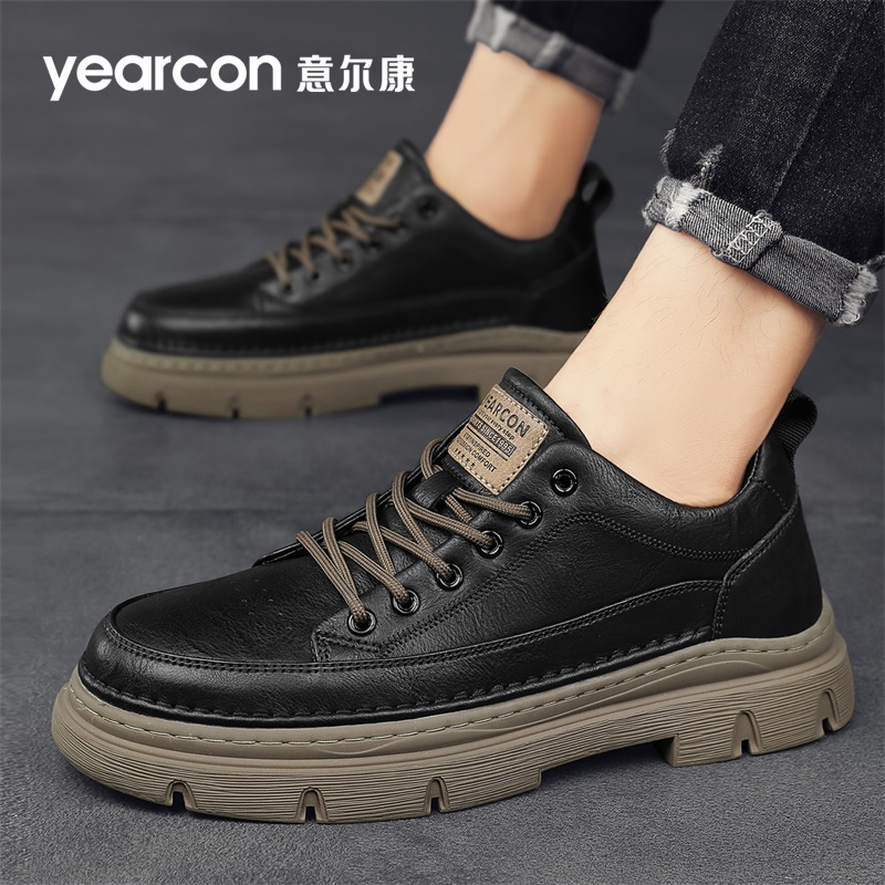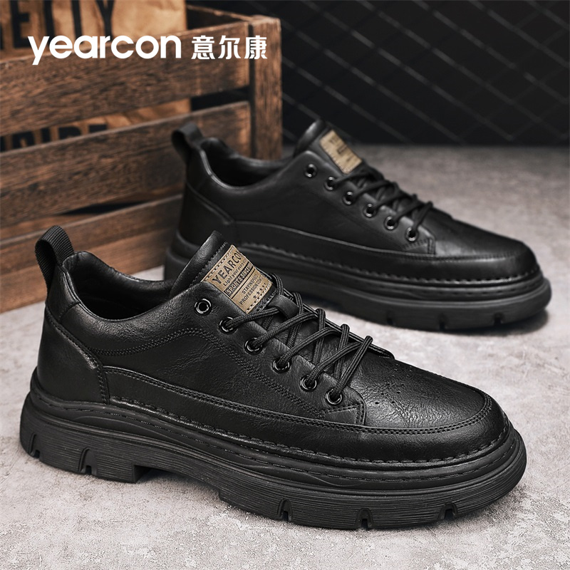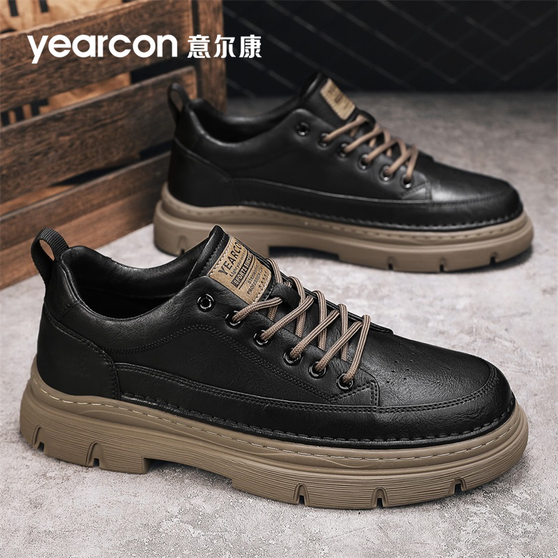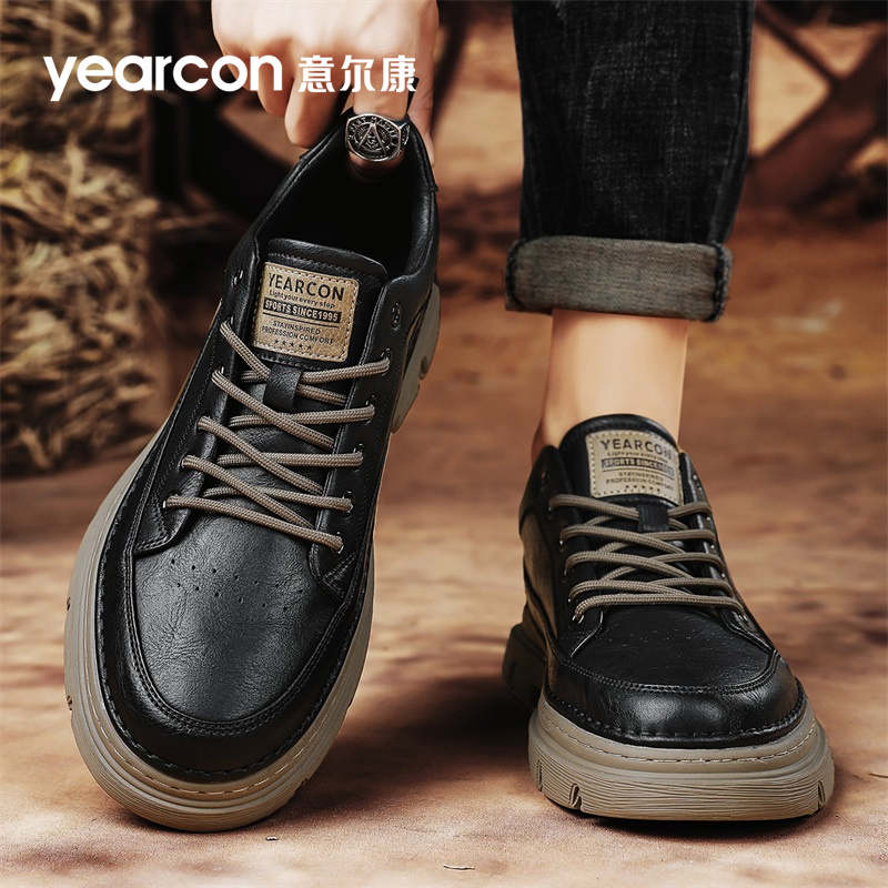 意尔康板鞋男鞋2025新款秋冬季加绒棉鞋增高工装马丁男士休闲皮鞋