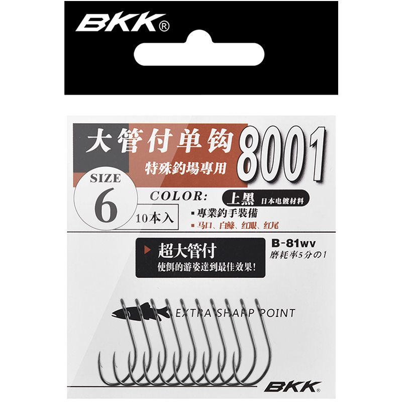 BKK路亚钩 8001大管付单钩大眼细条有刺溪流钩亮片小翘嘴马口白条