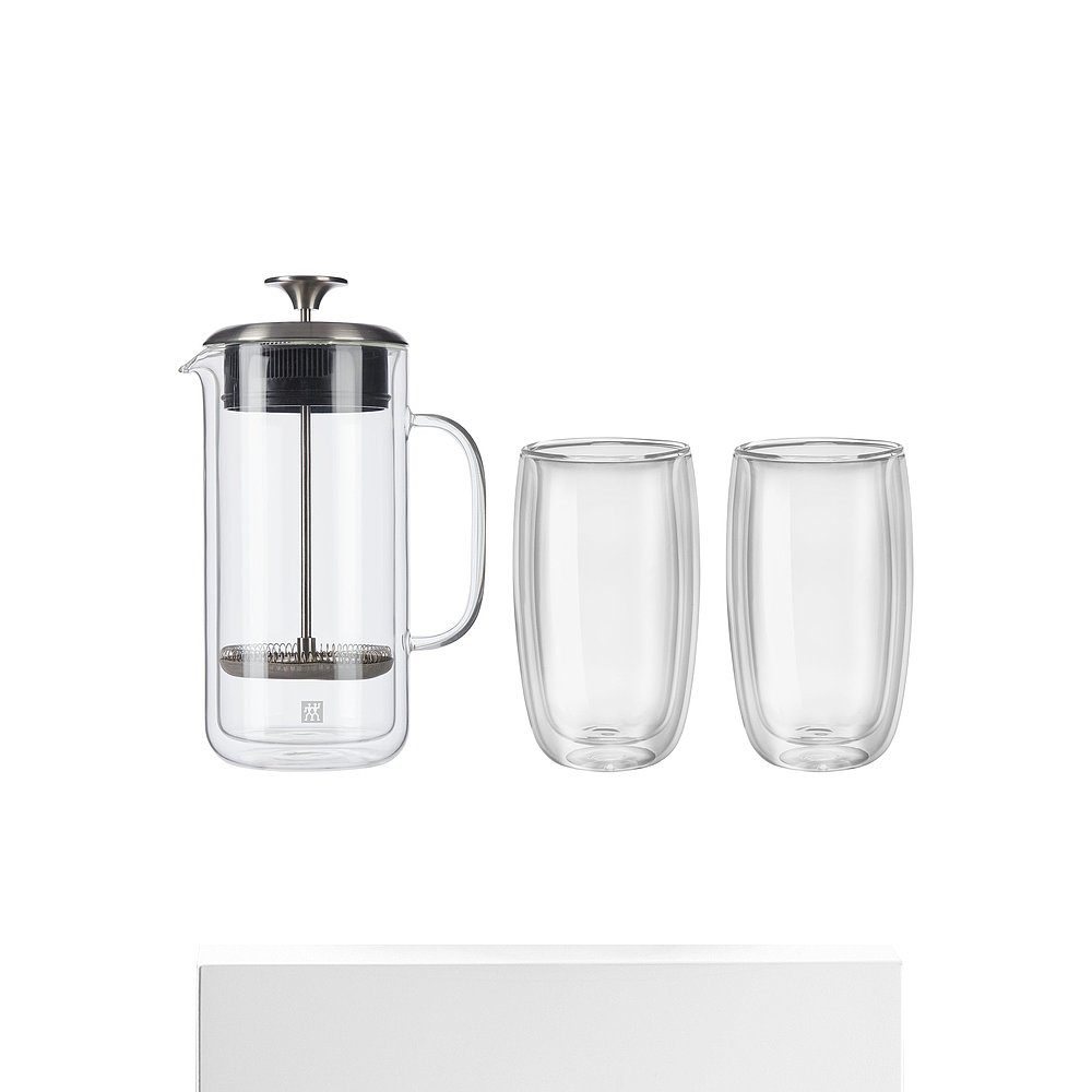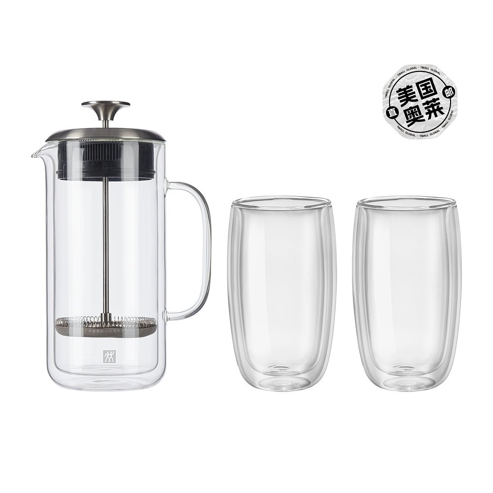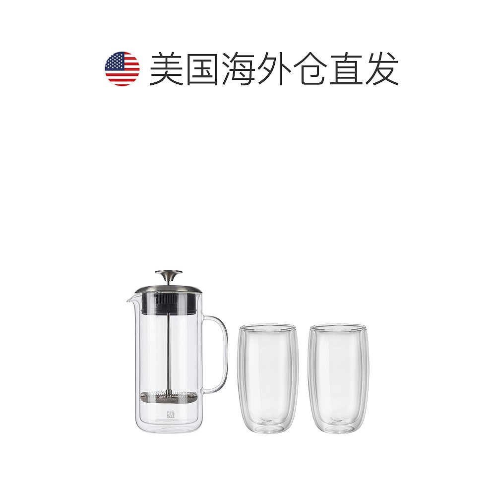 自营 ZWILLING Sorrento 双层法压壶和拿铁玻璃杯 - 透明 27 盎司