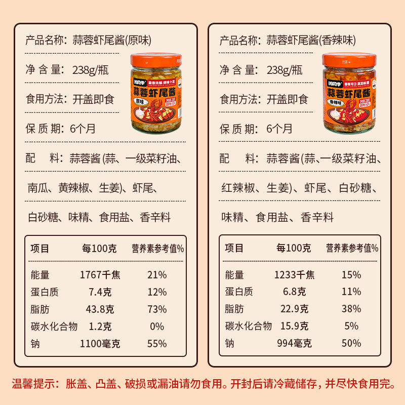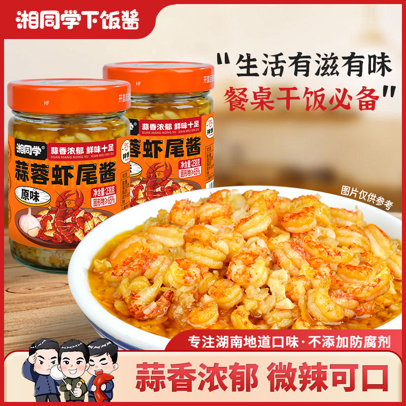 湘同学三个损友蒜蓉虾尾酱农家特产小龙虾下饭菜瓶装零食拌饭拌面