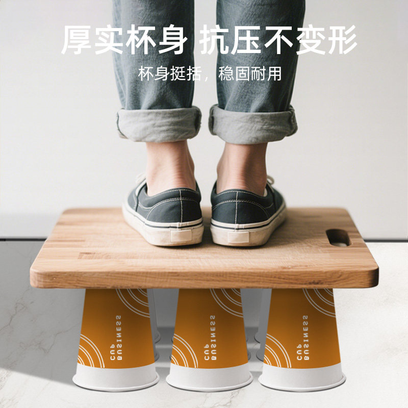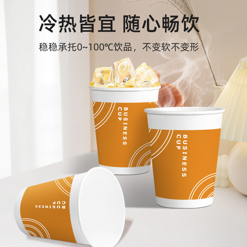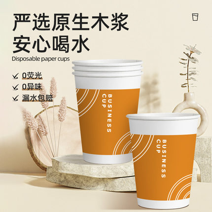 水天缘橙色商务加厚加硬一次性纸杯子冷热两用喝茶商用杯食品级箱