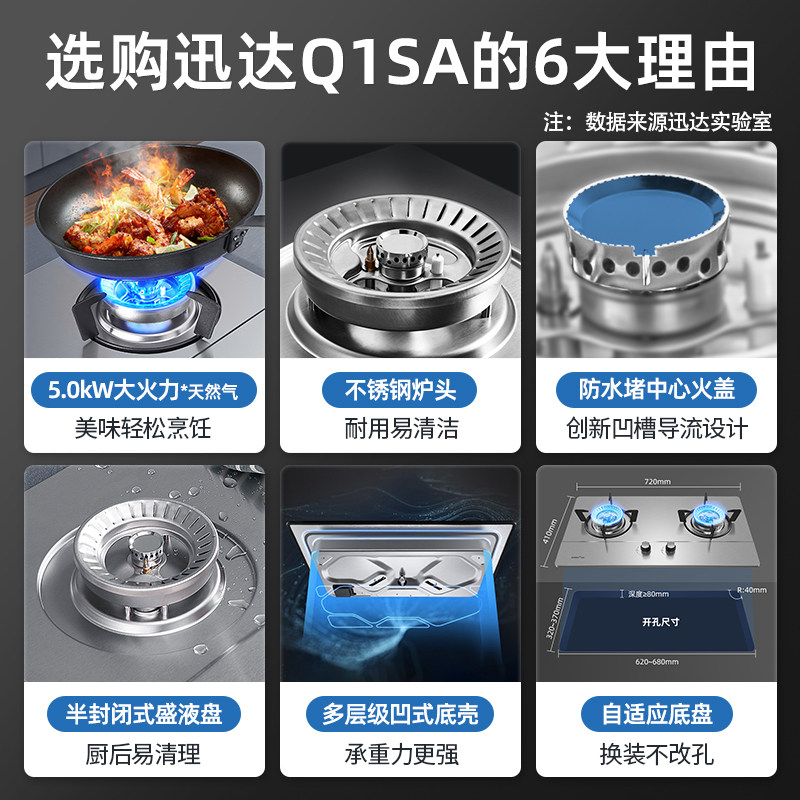 迅达不锈钢嵌入式燃气灶天然气灶家用台炉灶液化气台式双灶具Q1SA