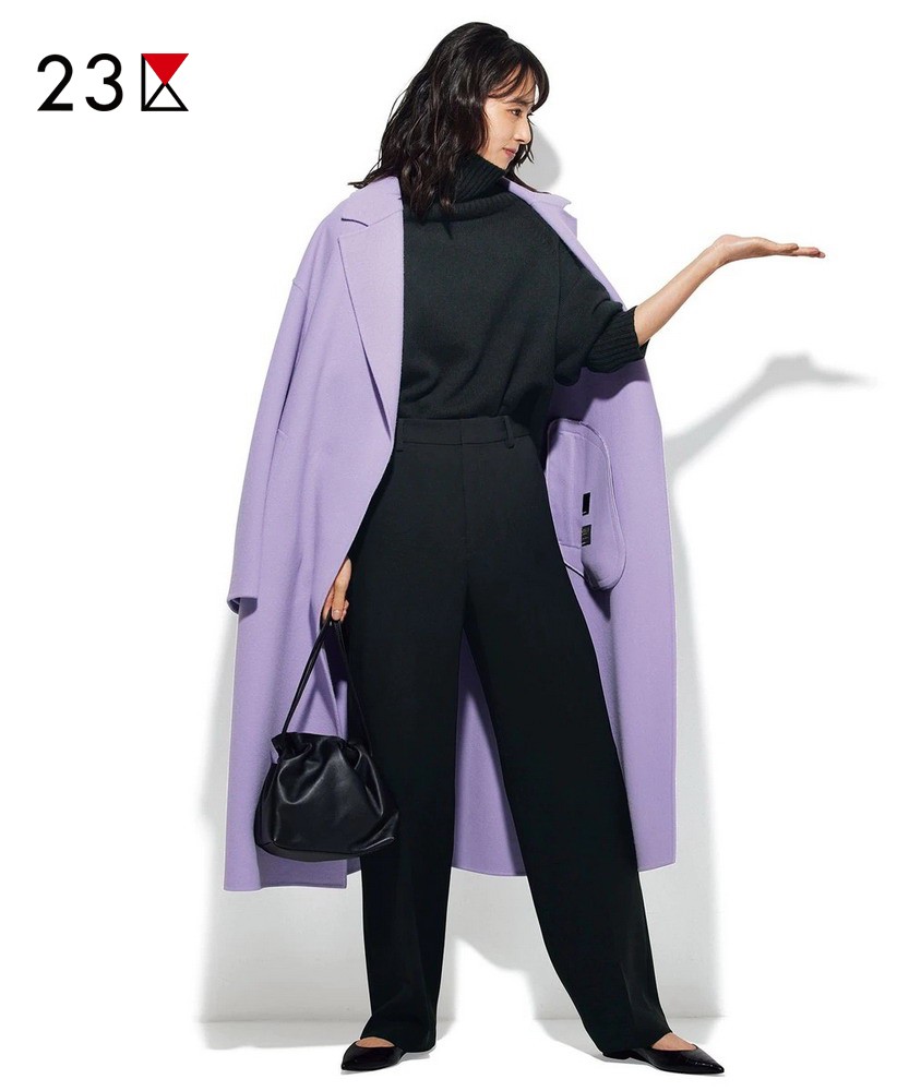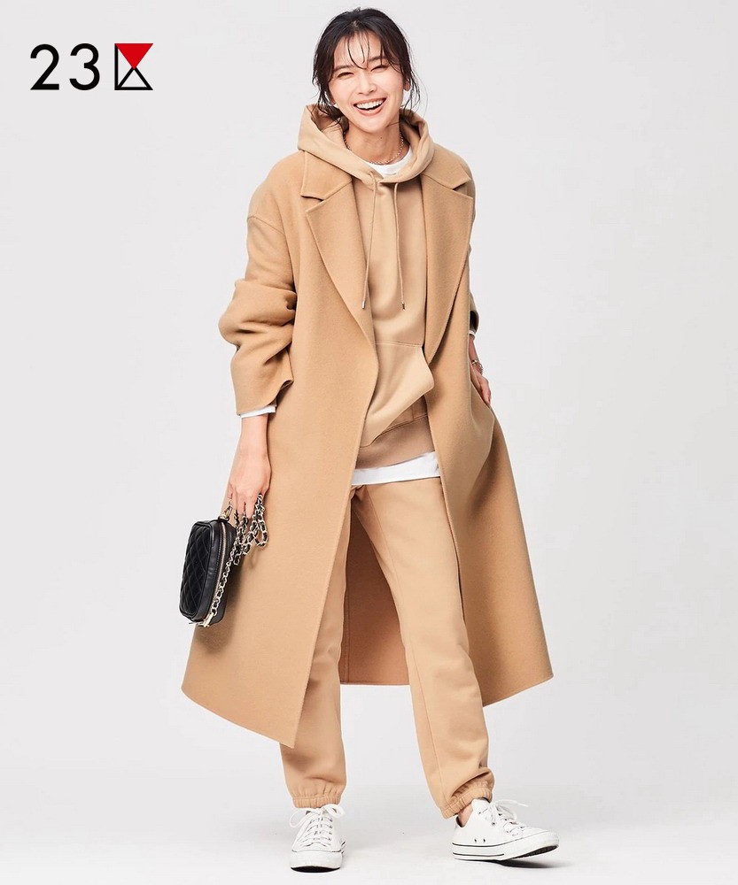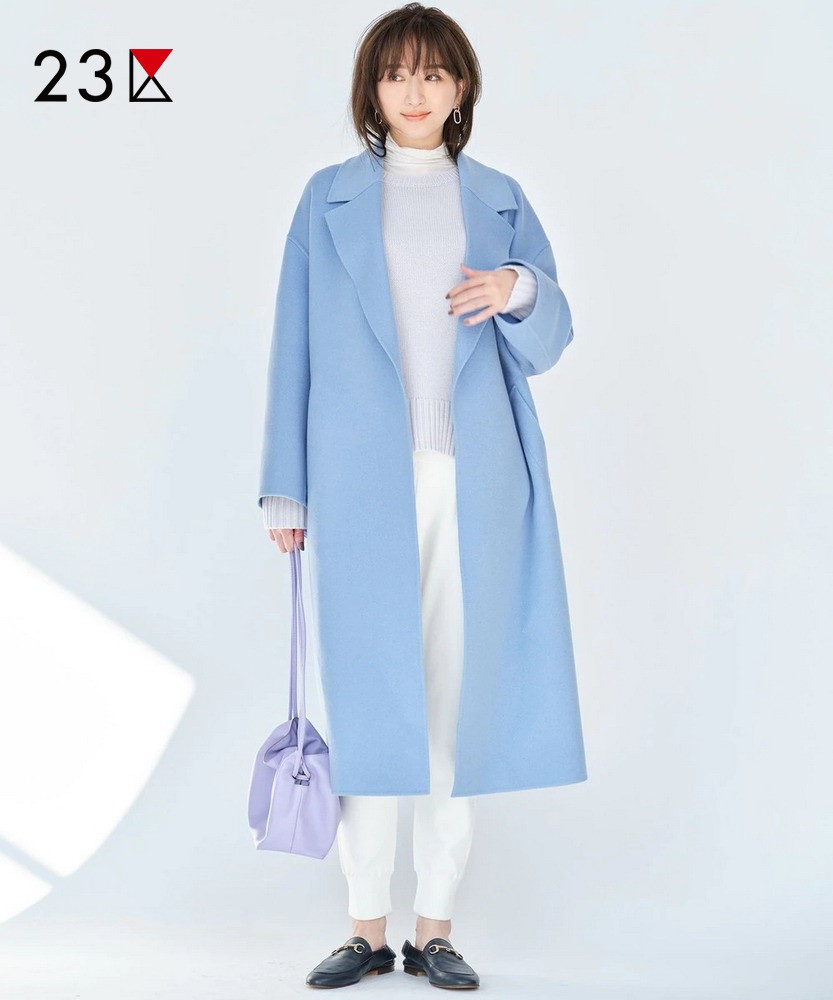 23区日系春季通勤宽松款系带羊毛混纺呢大衣中长款外套商场同款追