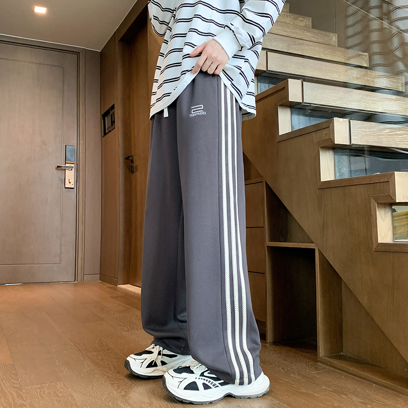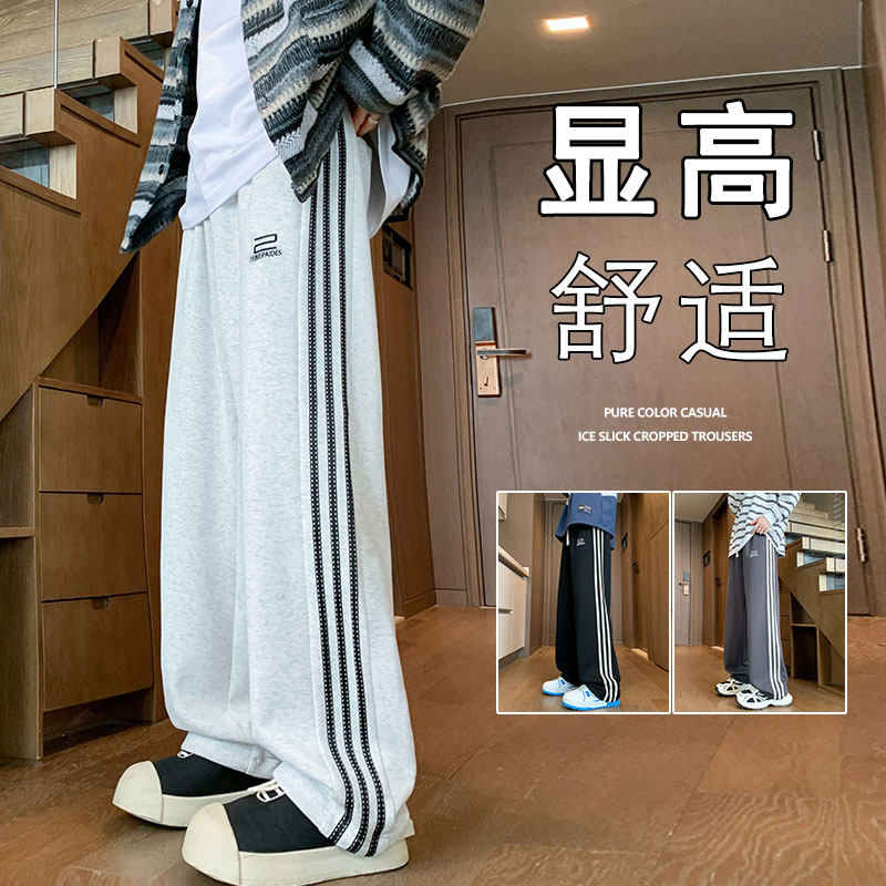 卫裤男秋冬季美式复古灰色阔腿长裤oversize港风垂感条纹运动裤子