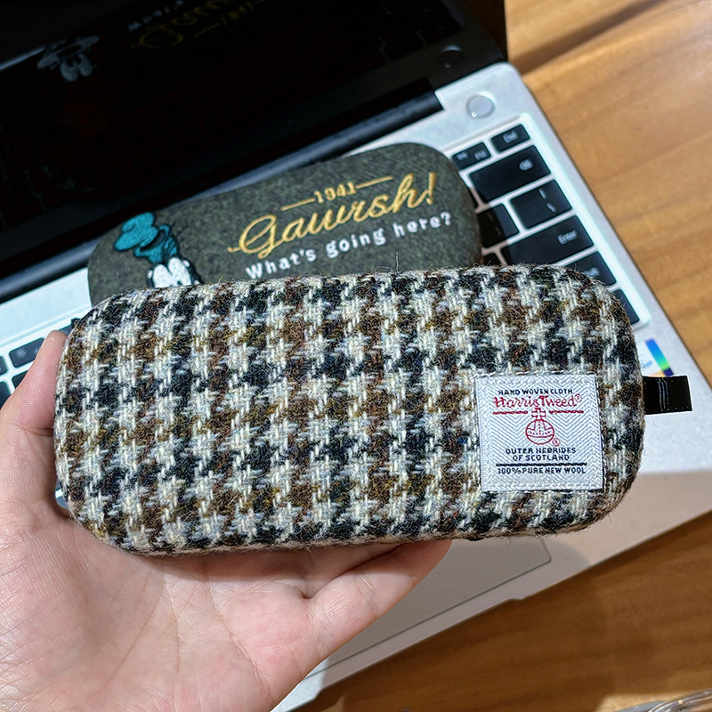 出口原单迪士尼眼镜盒高飞Harris Tweed英伦风布料Ins款包邮送布