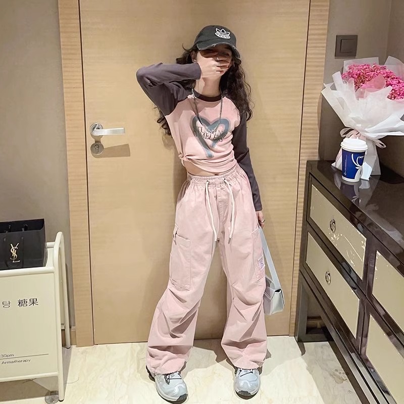 女童长袖T恤春秋款儿童洋气时髦纯棉打底衫大童女孩短款网红上衣t