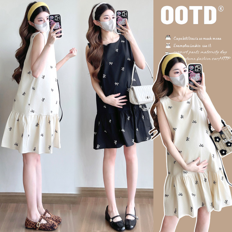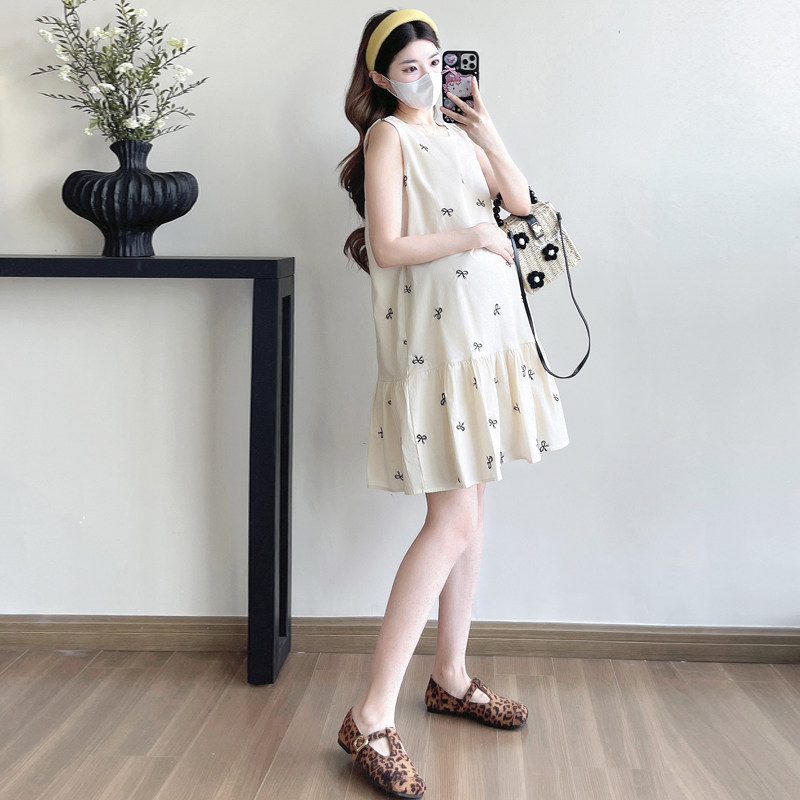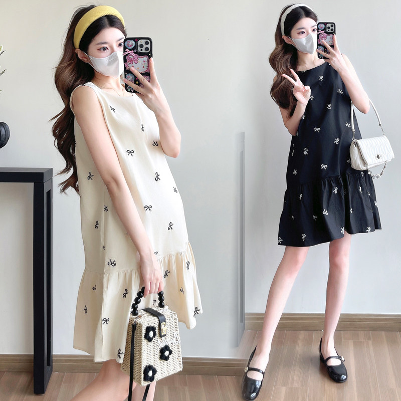 孕妇装夏装蝴蝶结刺绣无袖背心裙