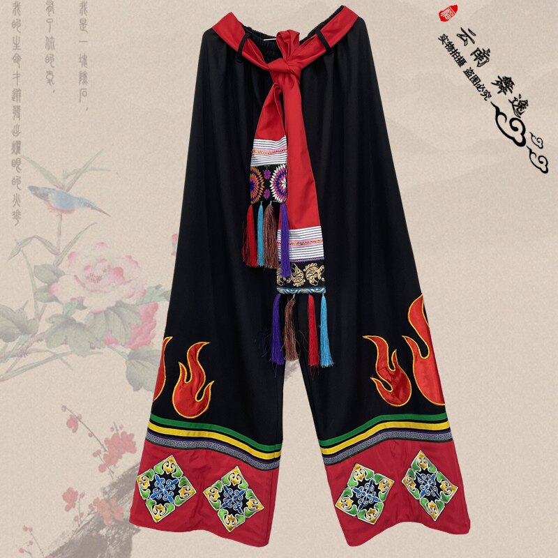 彝族成人男单裤子 苗族火把节男装长裤 壮族少数民V族特色绣花黑