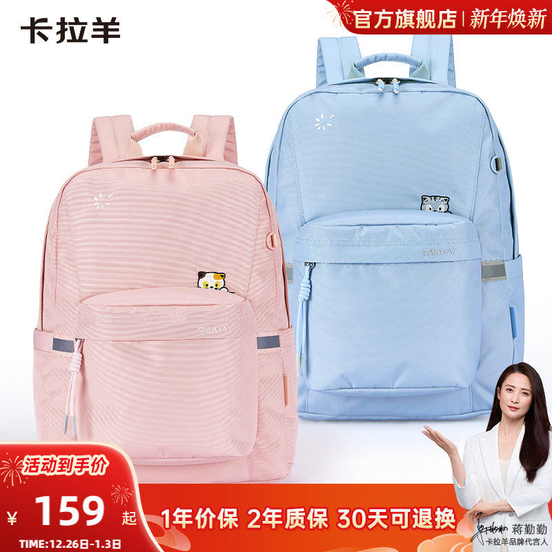 卡拉羊超轻云朵休闲包大容量中学生书包女双肩包徒步短途登山包男