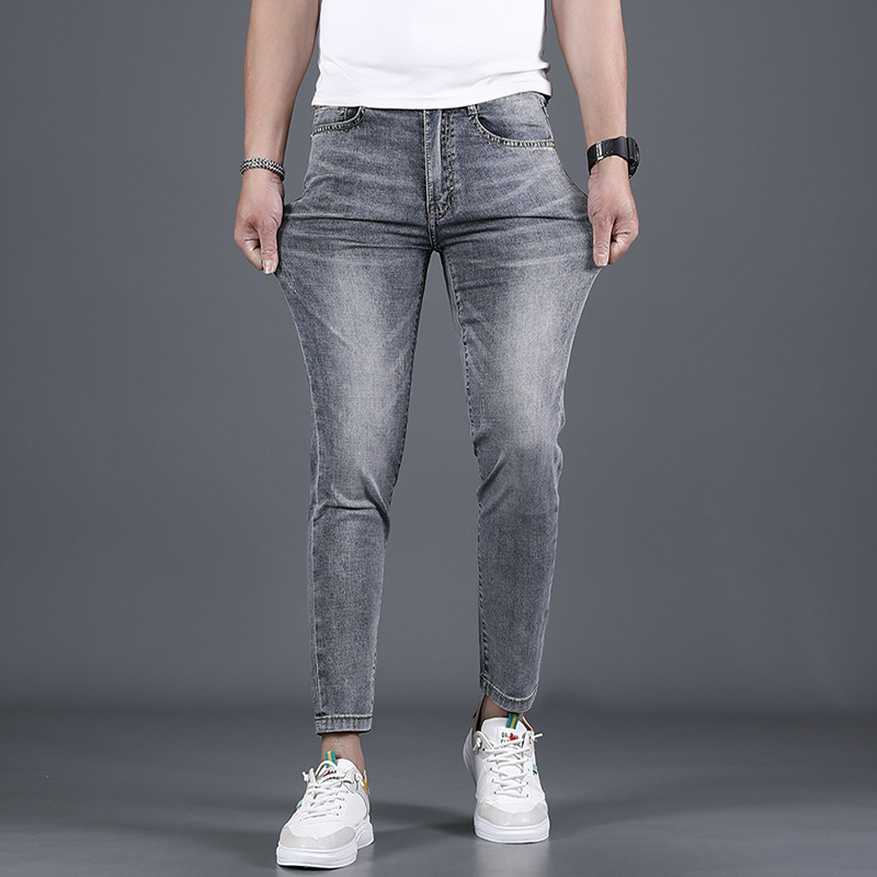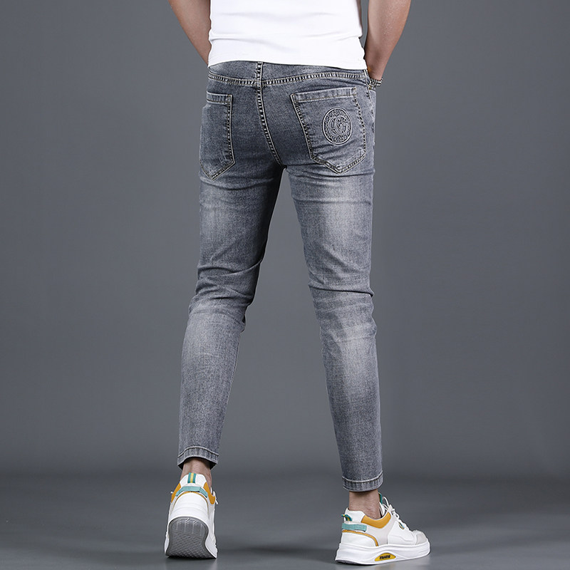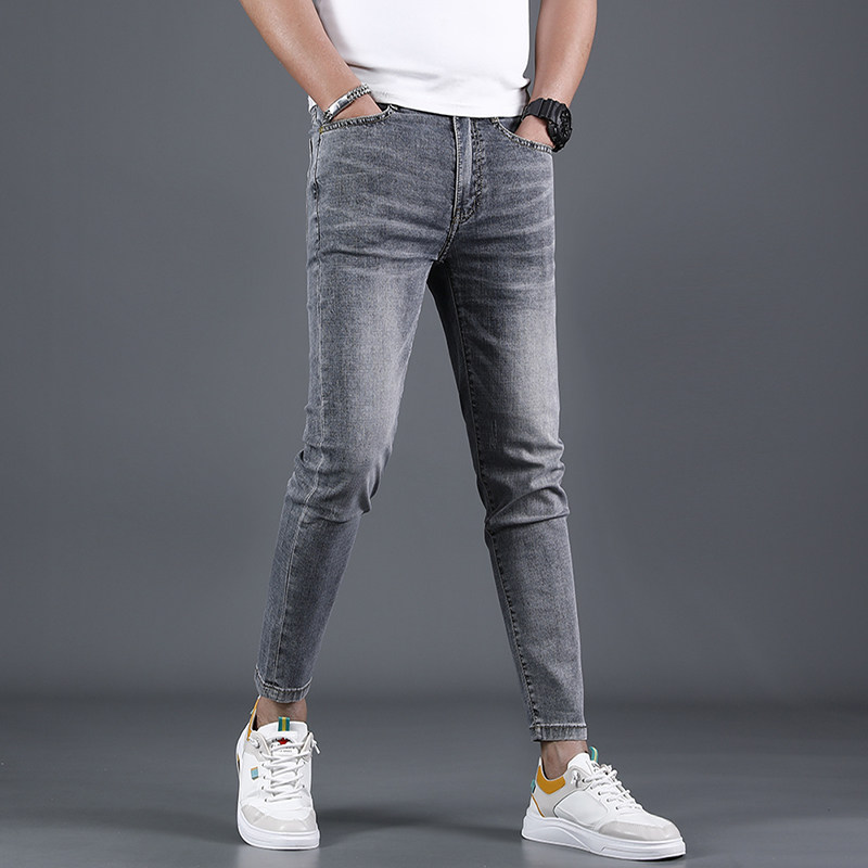 皇引九分牛仔裤男修身小脚